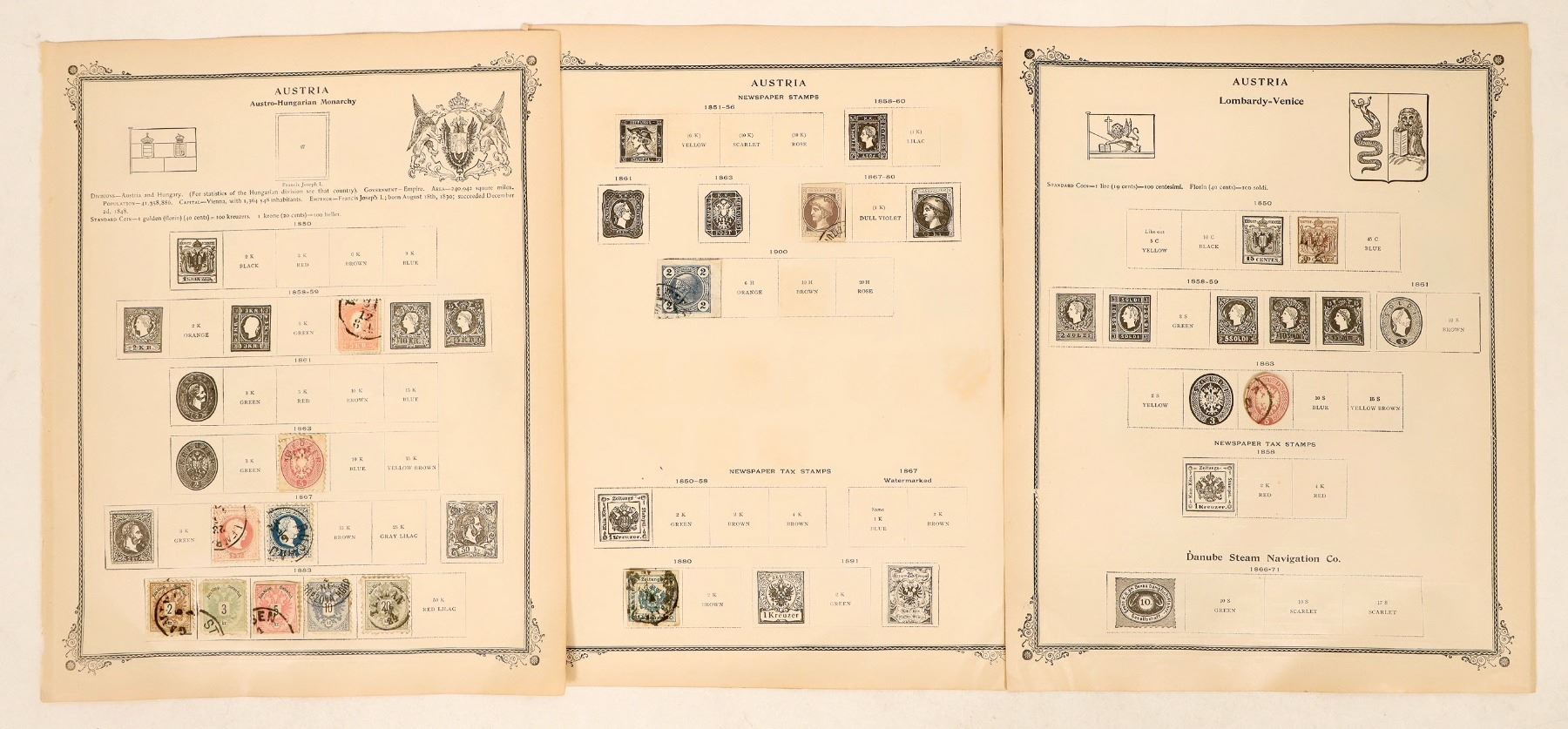 Collection of 45 early postage stamps from Austria, c1850-1900. Denominations- 1-60. All canceled, except 1 mint.