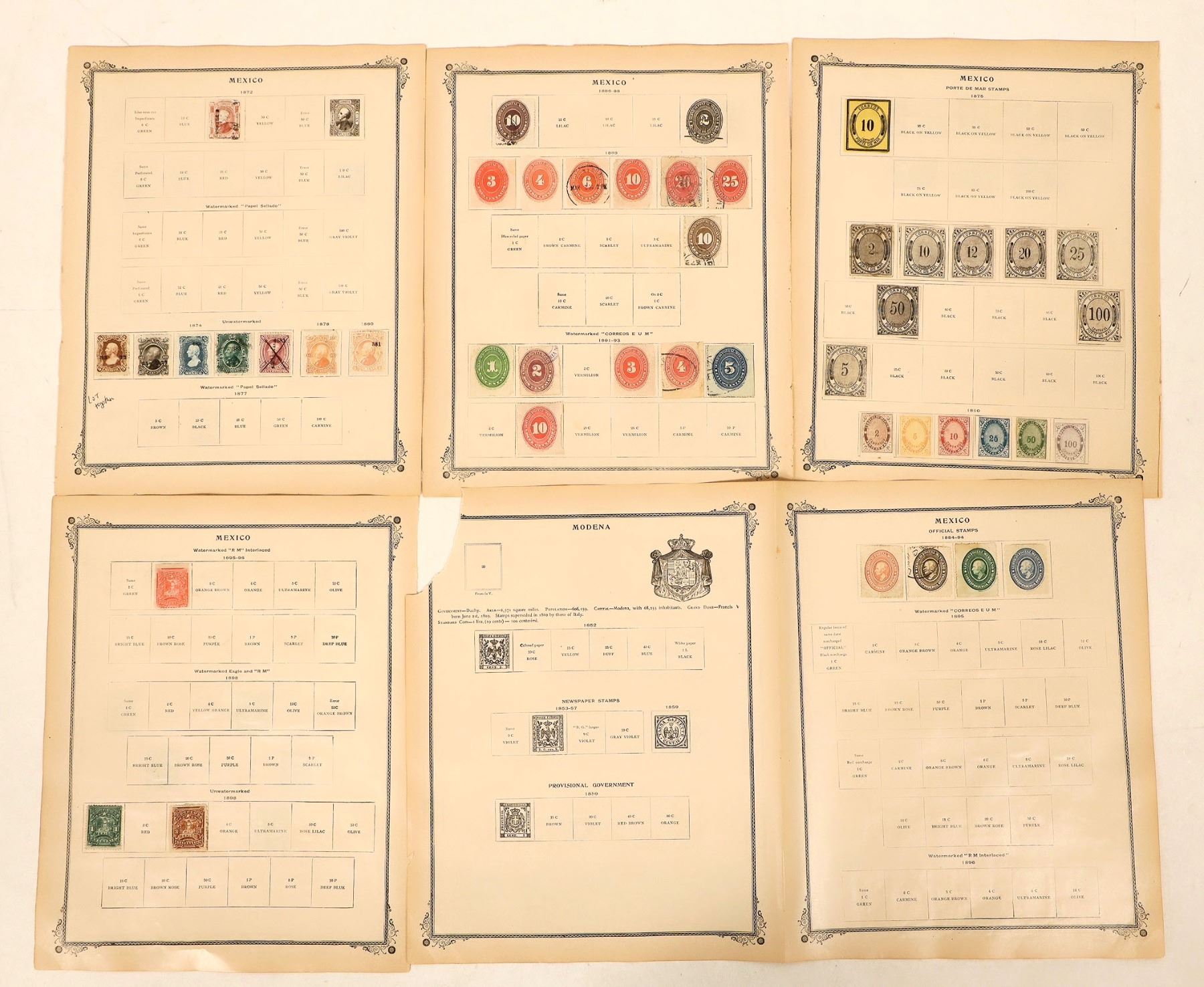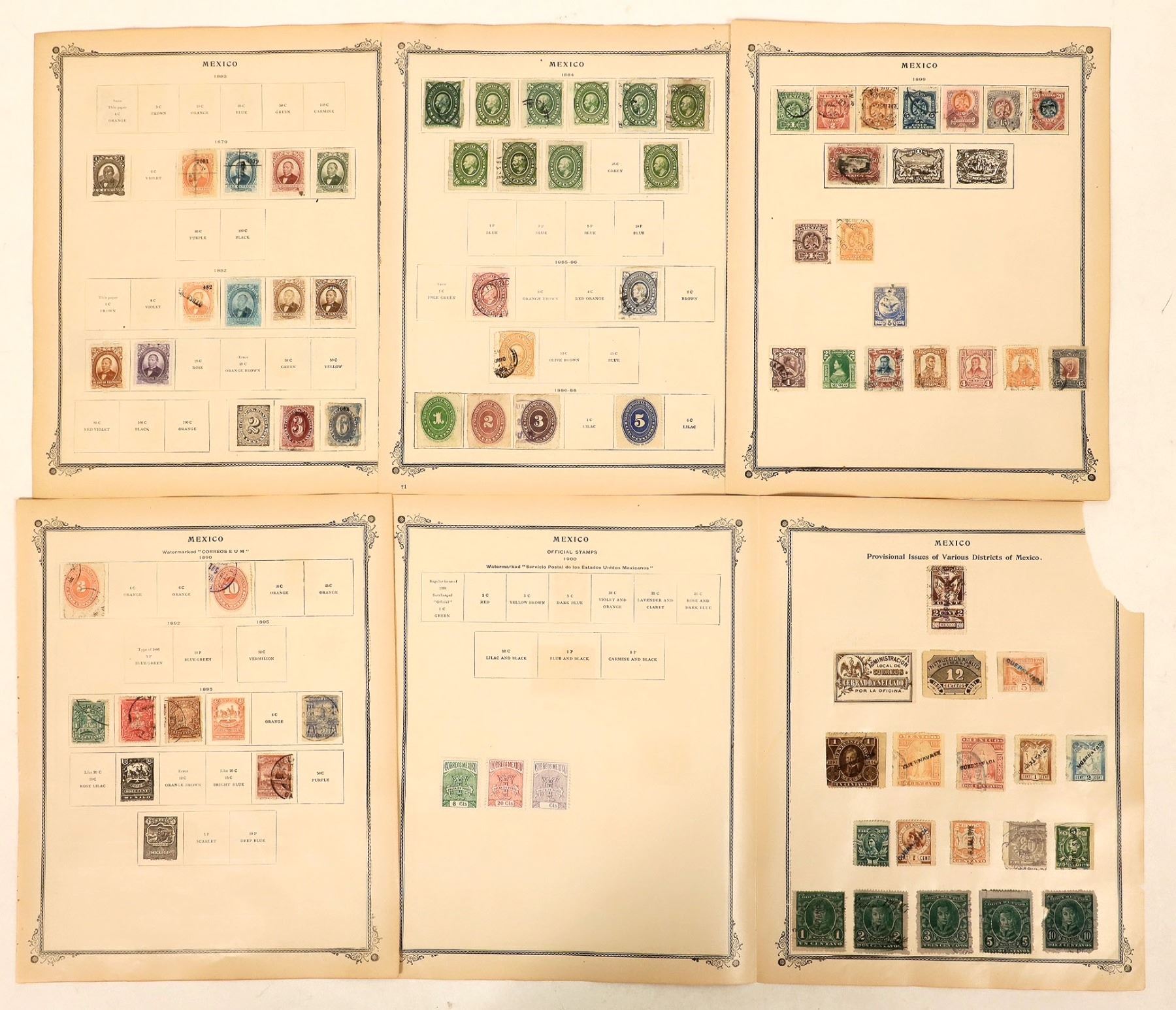 Collection of over 100 postage stamps from early Mexico, c1872-1900. Includes Provisional Issues of Various Districts of Mexico (19); unwatermarked 1874-80 (7); unwatermarked 1898 (2); watermarked "Correos E U M" (8); watermarked "R M" Interlaced (1); Porte De Mar Stamps (15); Official stamps 1884-94 (4). Denominations- 1-100. Mix of used and mint.