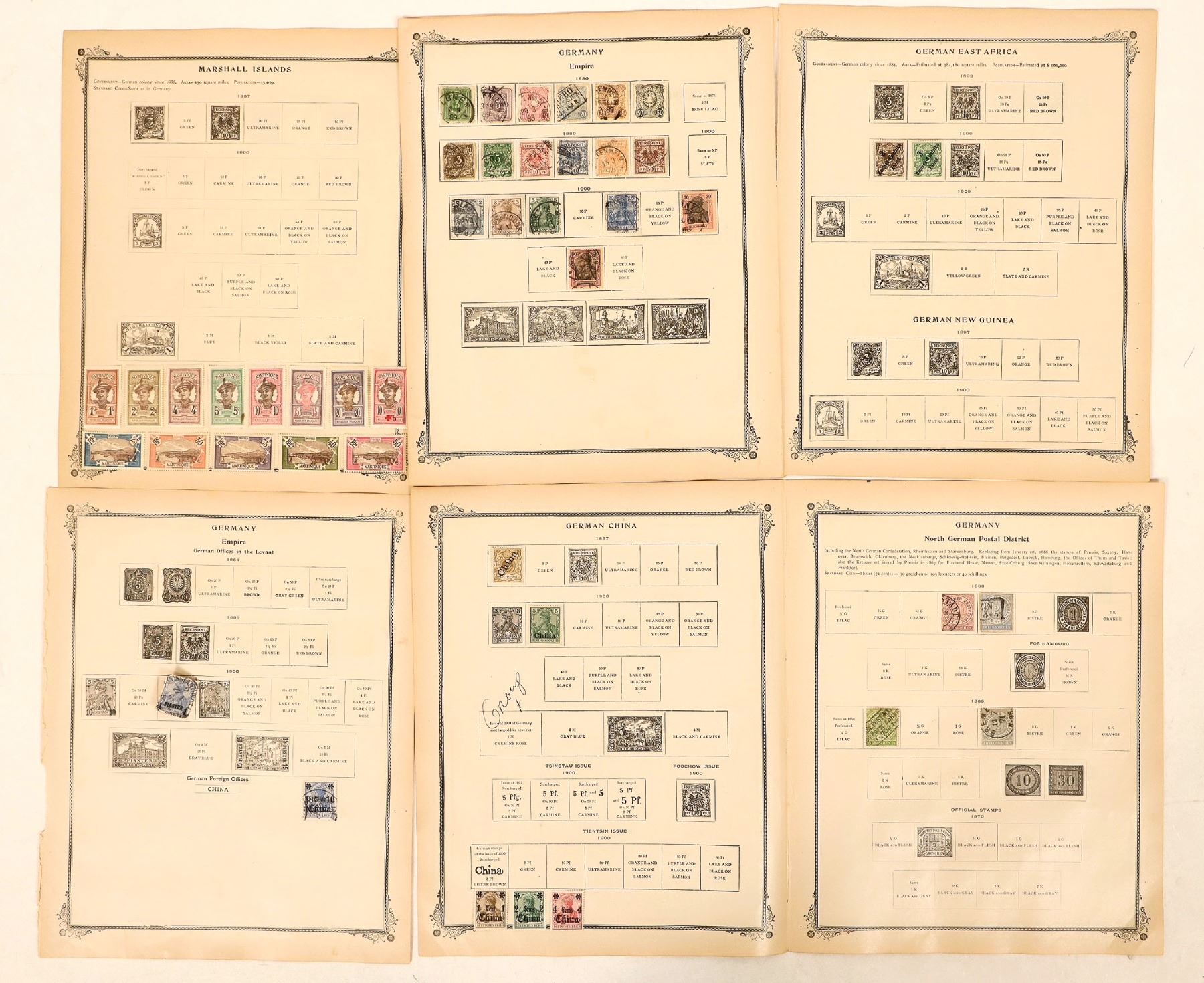 A collection of 64 early postage stamps from Germany and German Colonies, etc., c1862-1900. Includes: German China (5); German East Africa (2); Germany-Northern States (1); Germany-Southern States (2); Germany-North German Postal District (4); Germany-Empire (29). Also: Martinique (13); Gambia (2); and Guadeloupe (6). Denominations - 1/3-50. Mix of canceled and mint.