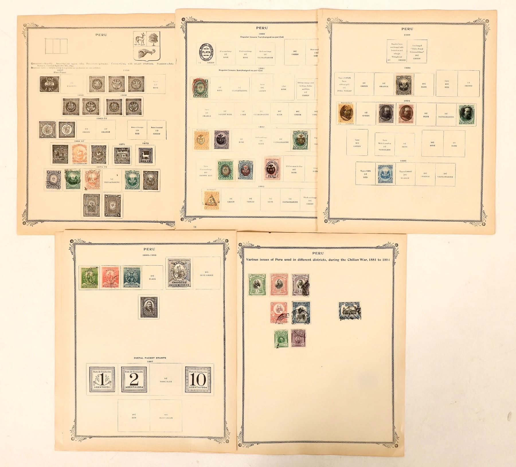 Early postage stamps from Peru (38), c1866-1900. Denominations - 1-50. Mix of canceled and mint. Includes various issues of Peru used in different districts, during the Chilean War, 1881 to 1884 (8).