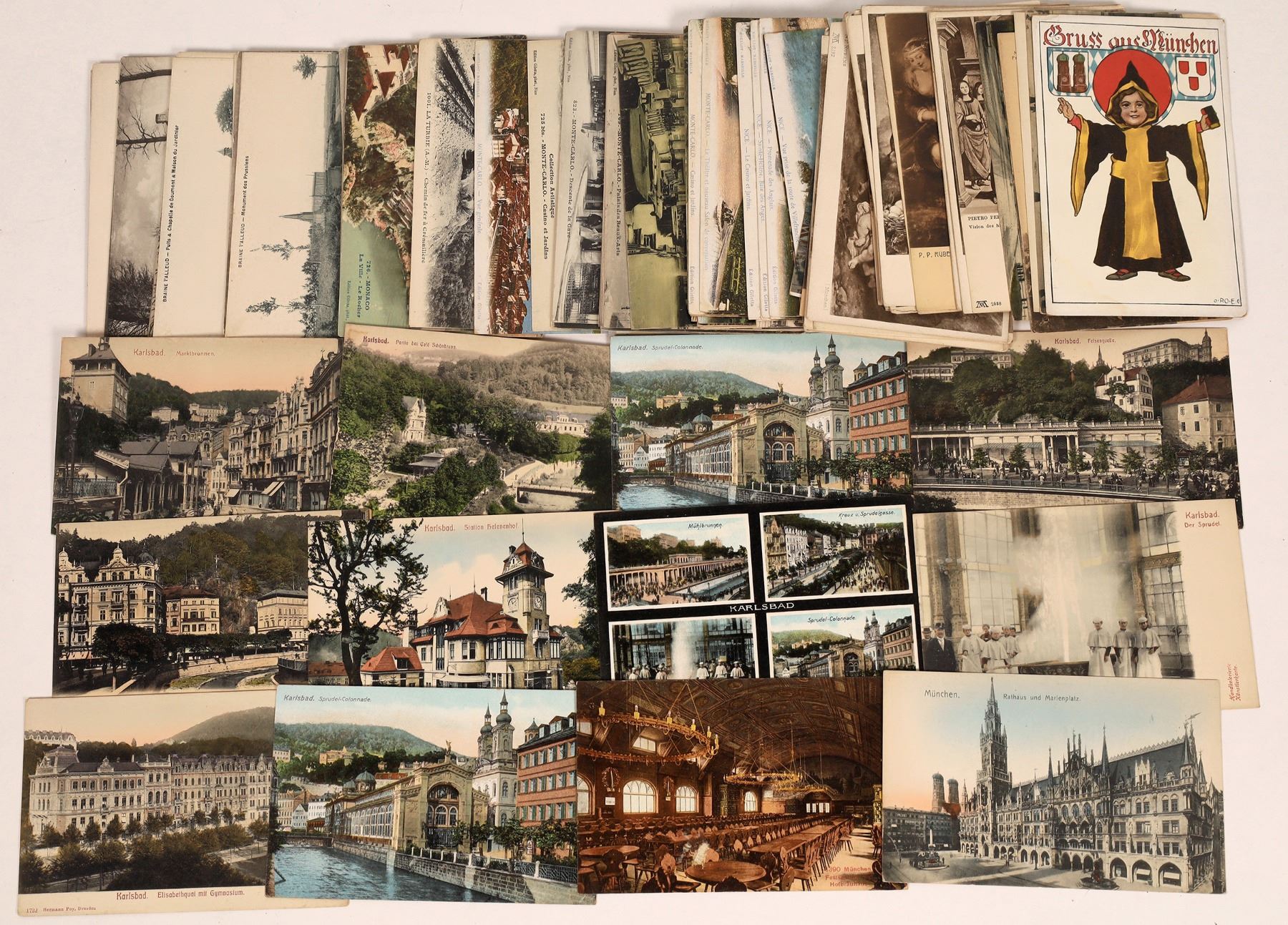 Lot of 76. Post cards most w/pictures some w/illustrations. No writing or postmarks.. As they were originally collected while traveling Germany , France Monte and Waterloo. Hotels, coastlines, bldg’s, city streets. famous art work by P.P. Rubens, B.E. Murillo. Street level, birds eye views. In a hard cover book. All are in good condition,