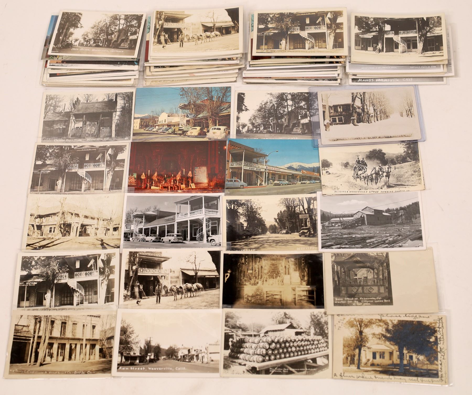 Lot of over 100 vintage postcards from the Trinity County town of Weaverville. A few street scenes from the 1940s-1950s, but older. Many of the Chinese Joss House