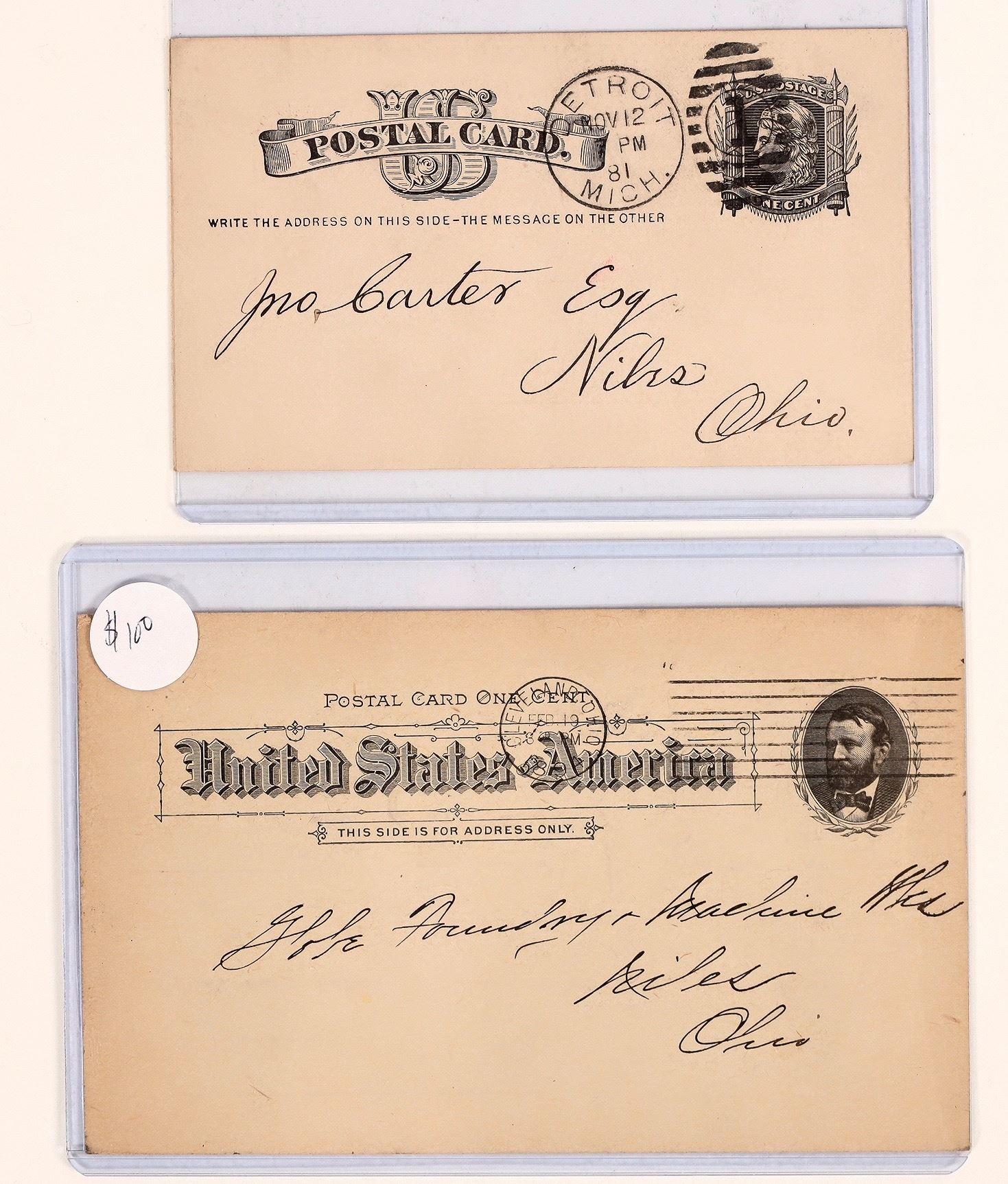RARE 1881 & 1891 pictorial advertising postcards. Includes: The Combination Gas Machine Co., Detroit, 1881; and The Parkin & Bosworth Co., machinery, manufacturers supplies, tools, etc., Cleveland, 1894. Both used.[