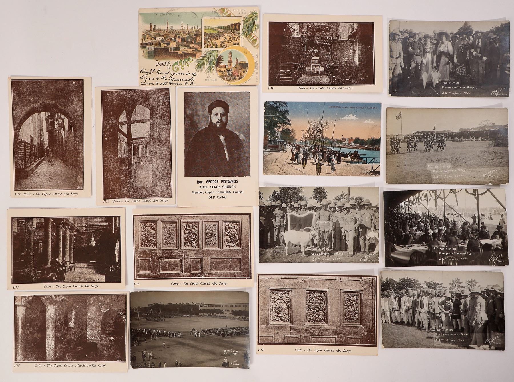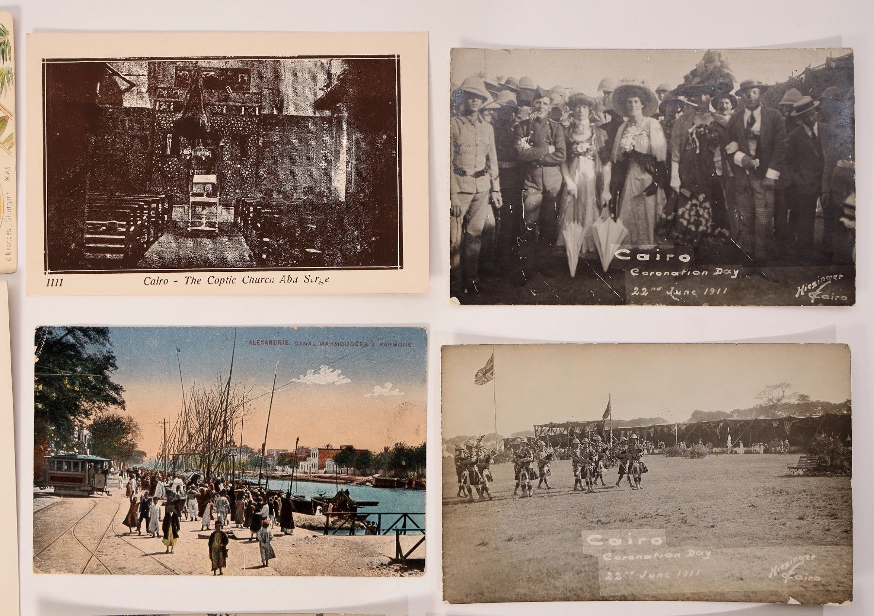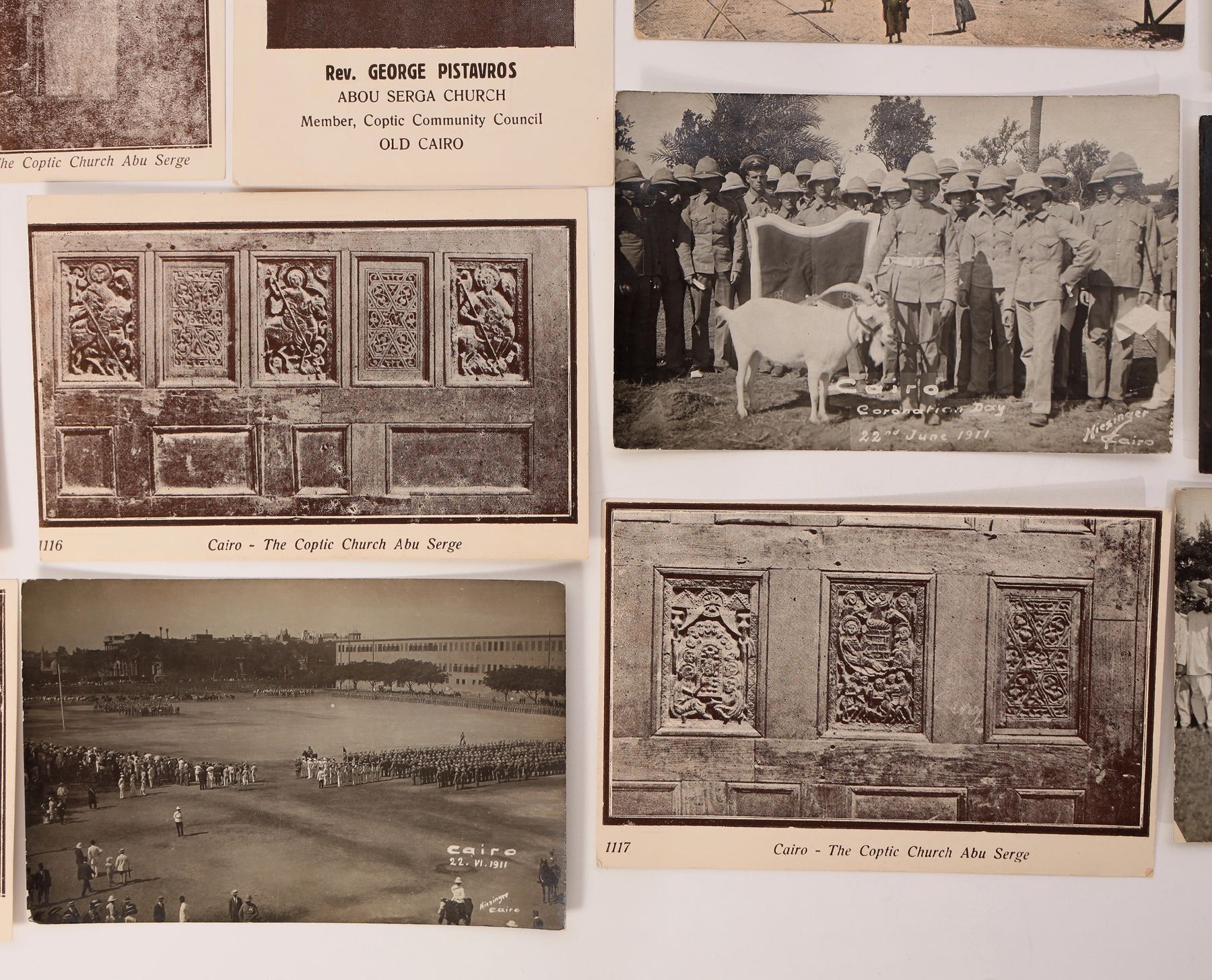 A collection of 14 postcards featuring scenes from Egypt, c1900-23. Two postmarked 1900 & 1923 Cairo. Six are RPCs.[ Egypt