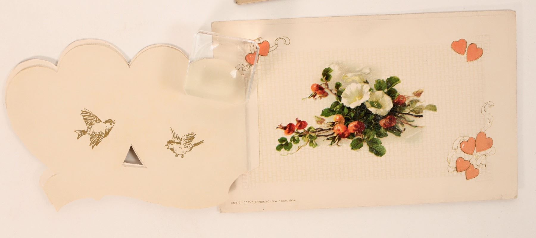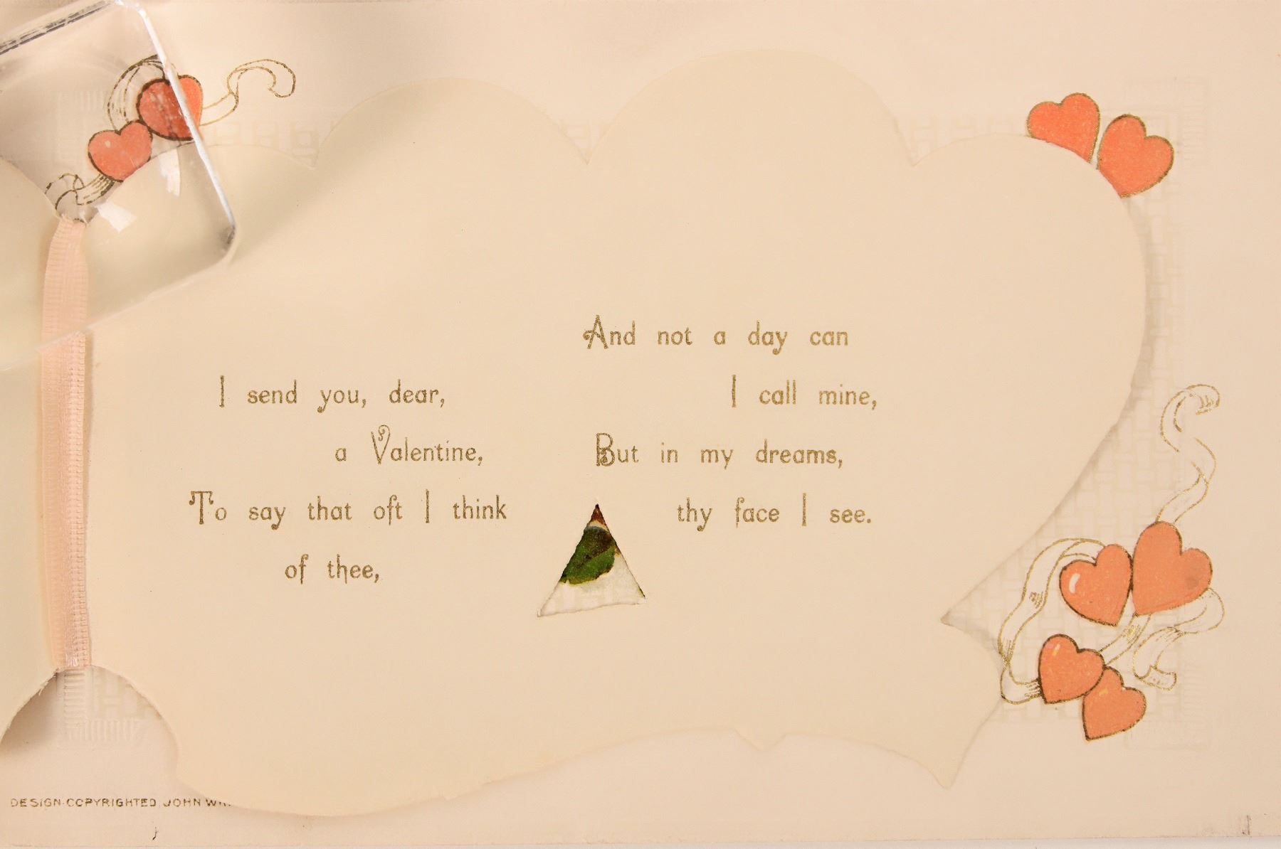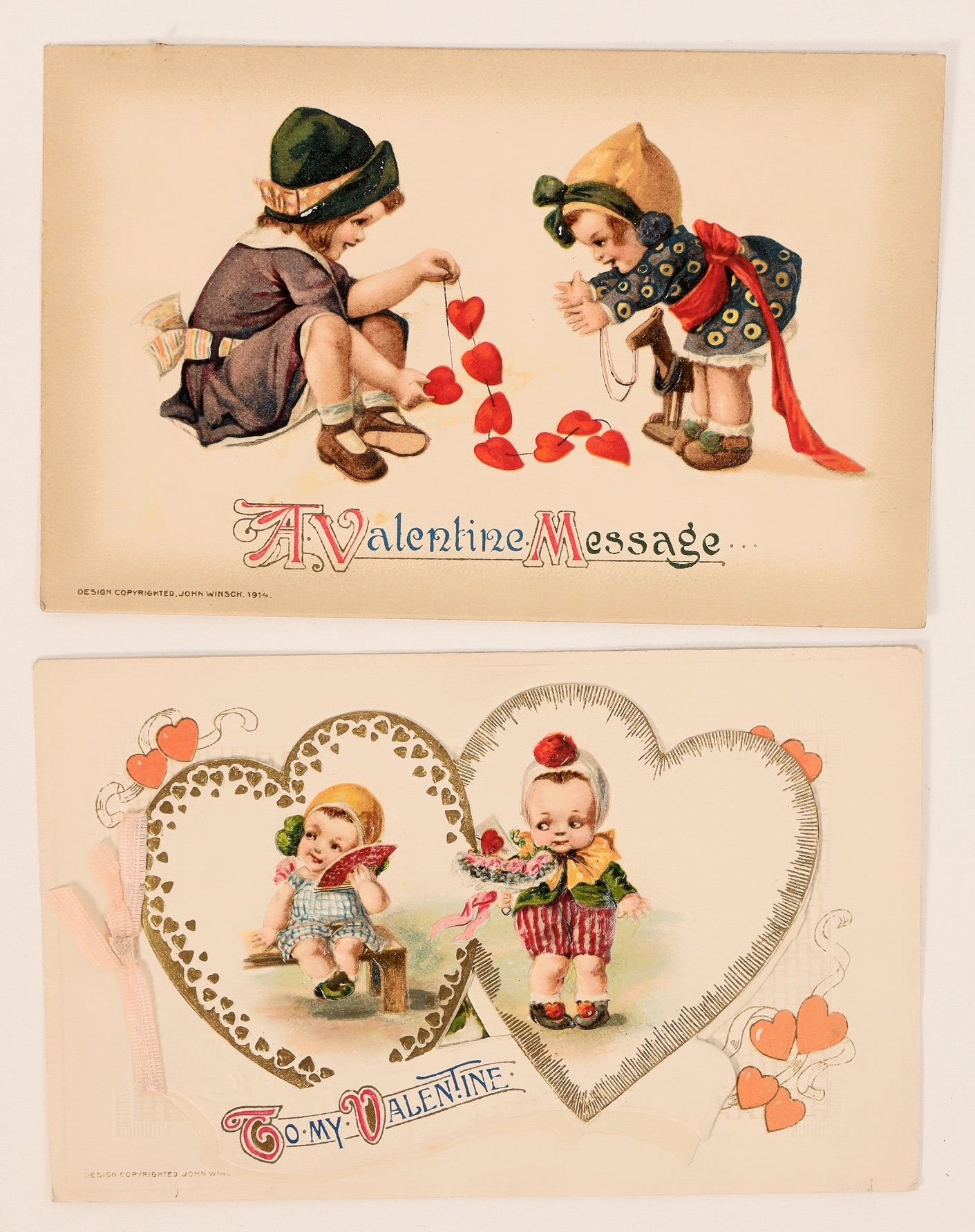 A pair of postcards of Valentines, c1916. One postmarked Poland, Ohio, 1916, the other blank. Both- Design copyrighted, John Wilson, 1914.[