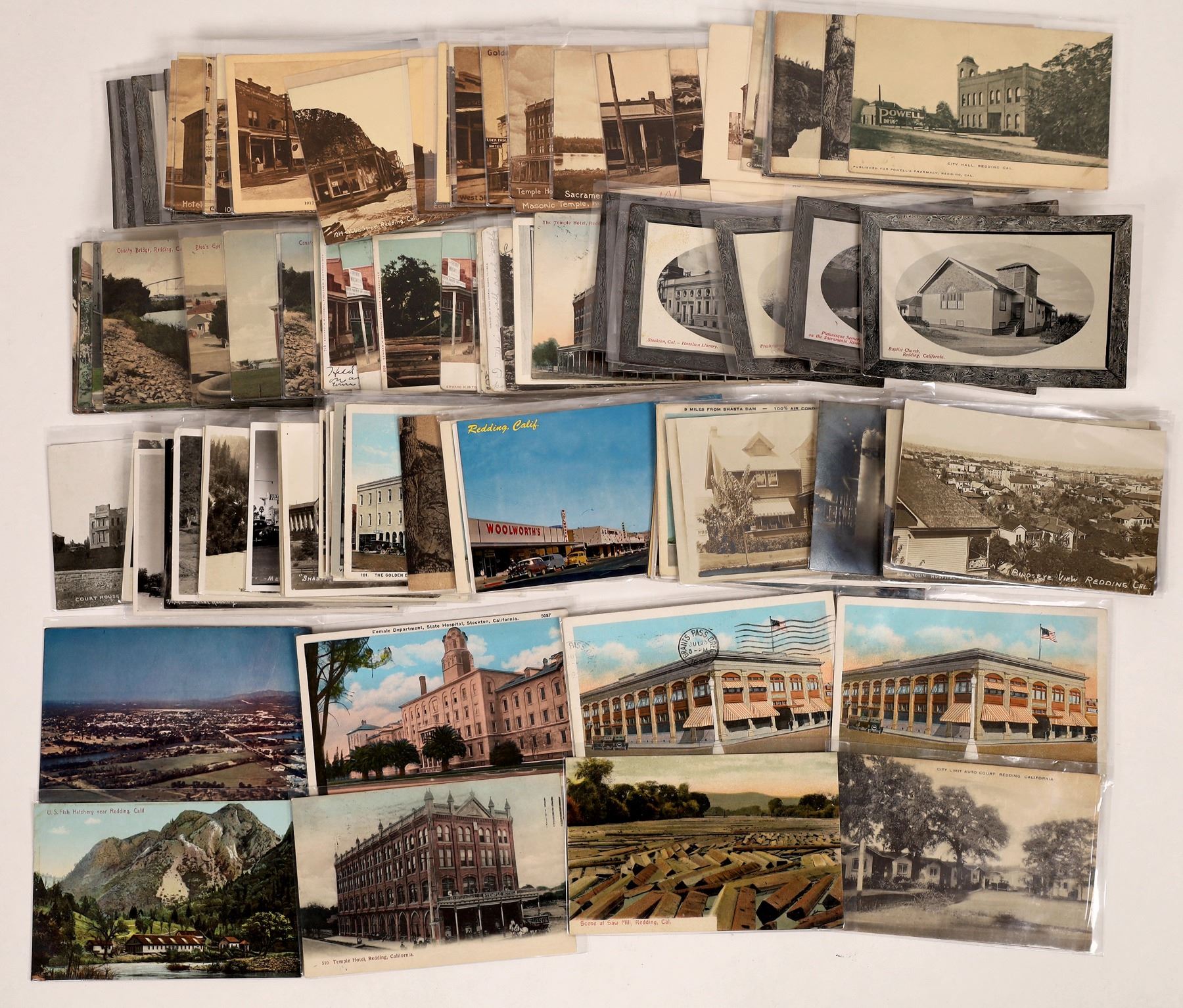 This is a collection of postcards depicting life in Redding, California; some as early as 1910. Over 100 cards, about twenty white border RPCs. A real photo journal from wooden sidewalks and horse drawn carriages to motor cars of the 1940's.