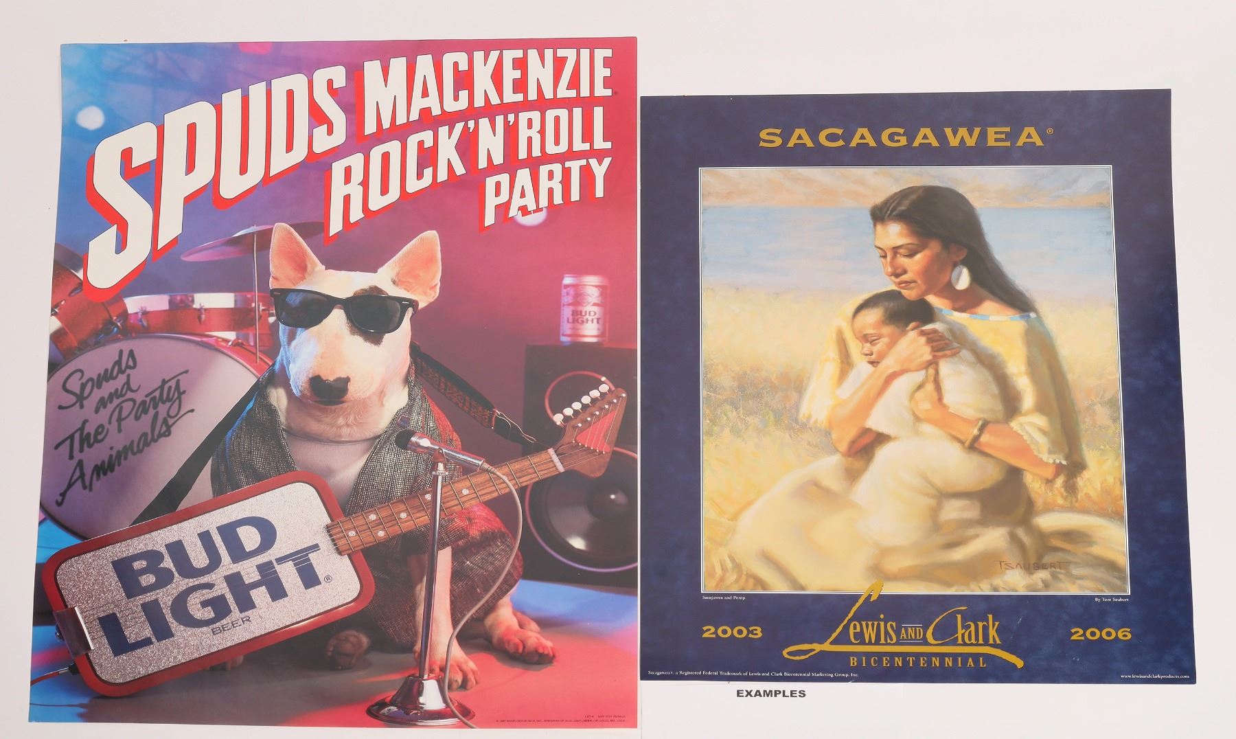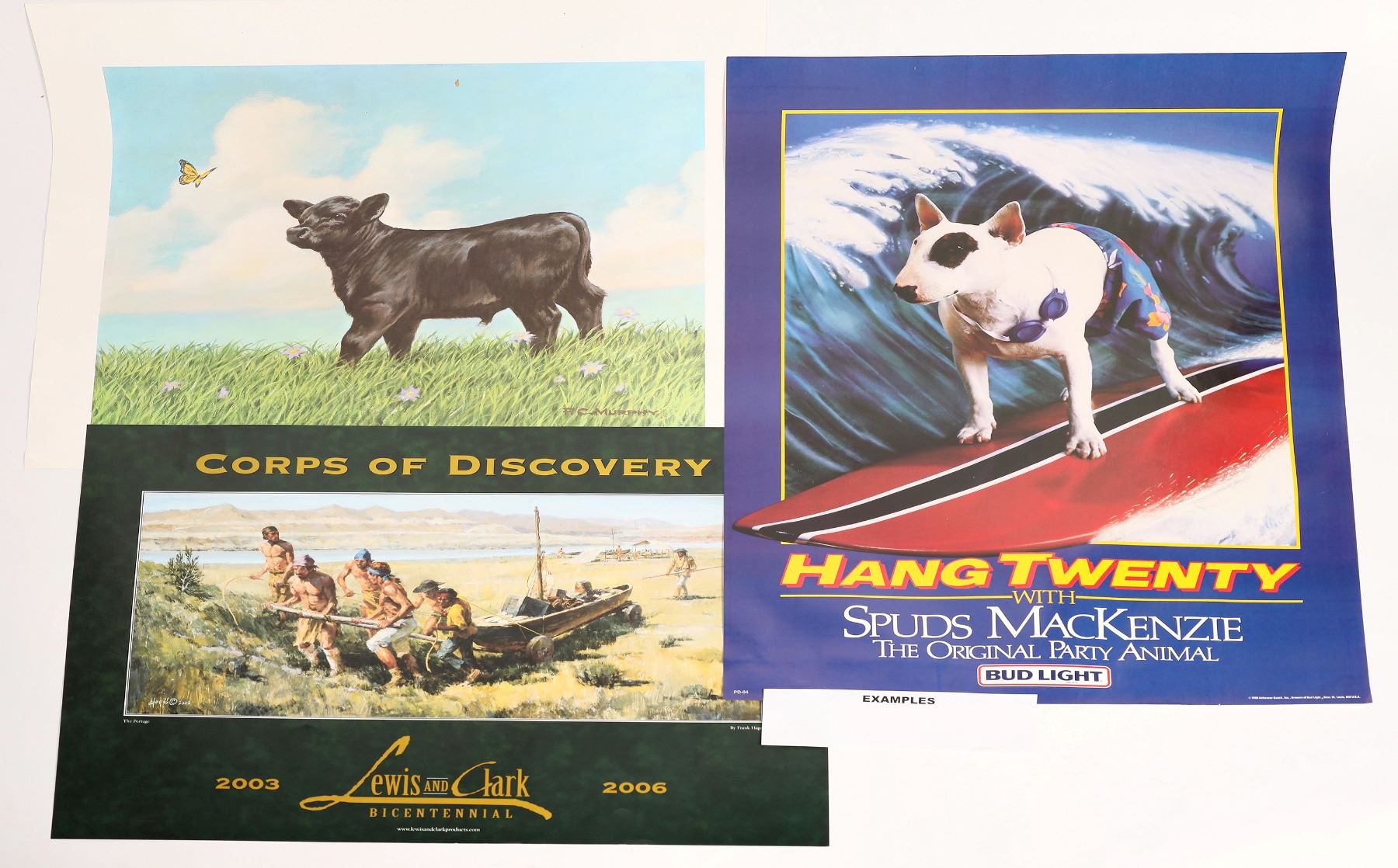 27 posters including several Budweiser including Spuds Mackenzie, Alaska, Alaska Railroad, Sacagawea, Spencer Tracy etc. About 30x20".