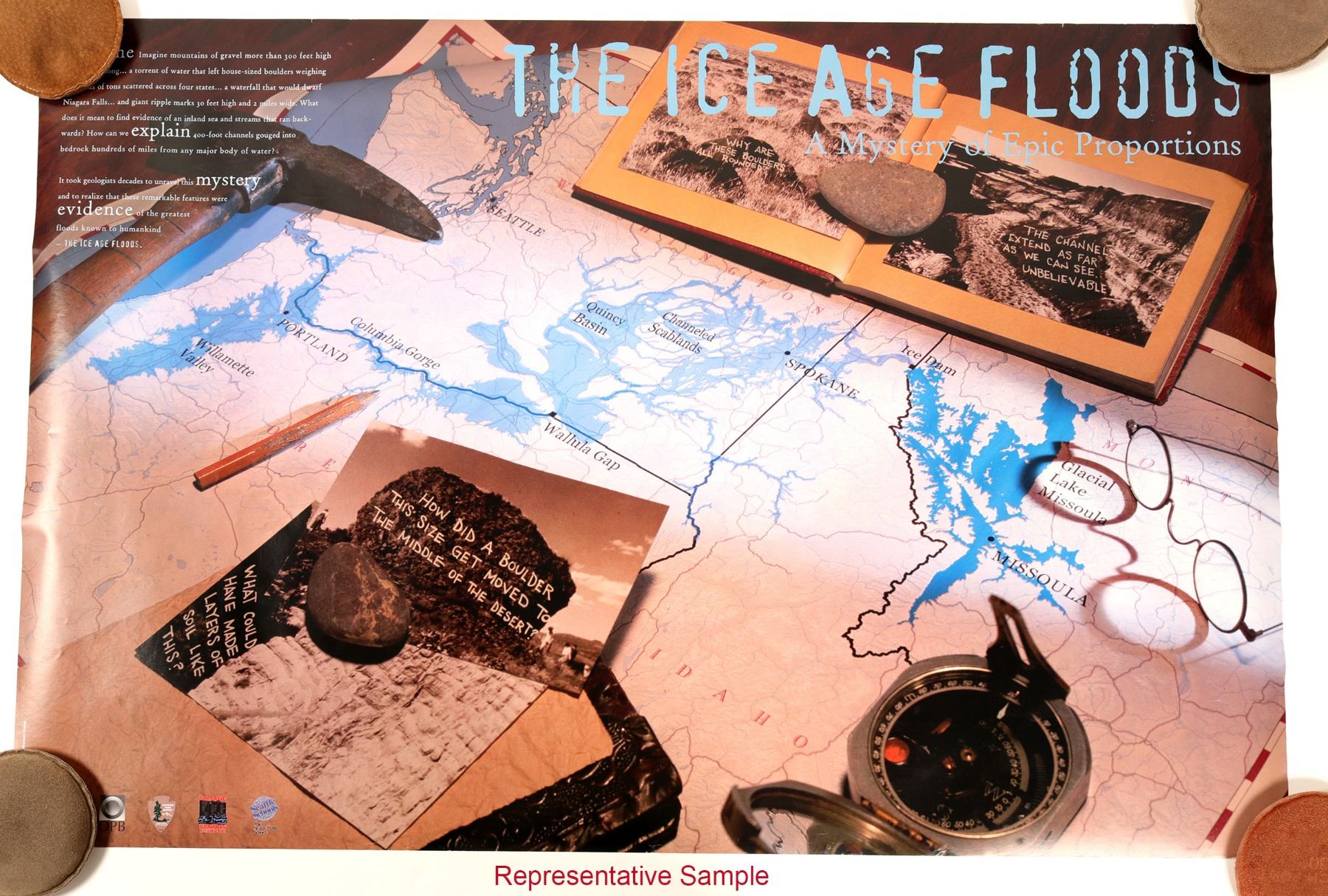 36" x 24". Map of the "Ice Age Flood"; Uniformitarianism vs. catastrophic geologic events. Interesting lot. 3 Maps. Montana Montana
