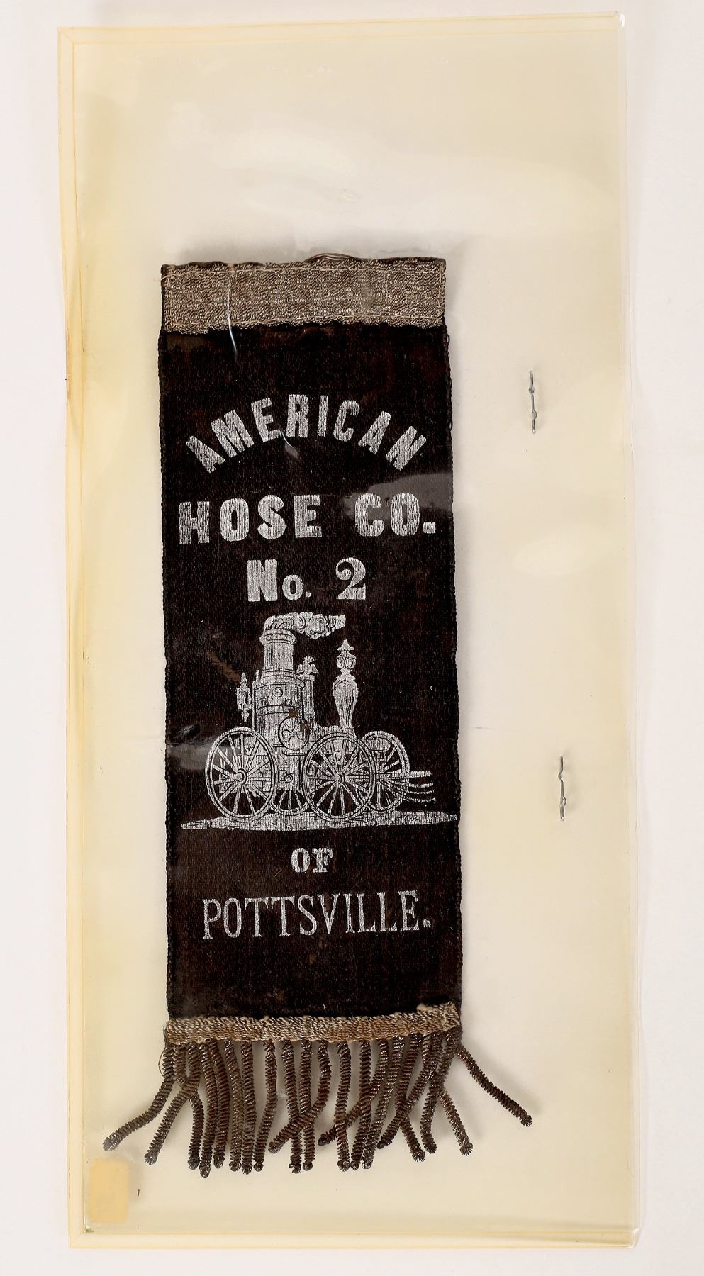 Pottsville American Hose Company No. 2 ribbon. Usually worn for conventions, parades and other gatherings. Measures 2"x 8" and is in nice condition. Please see photos for more details. Pennsylvania Pottsville 1900s