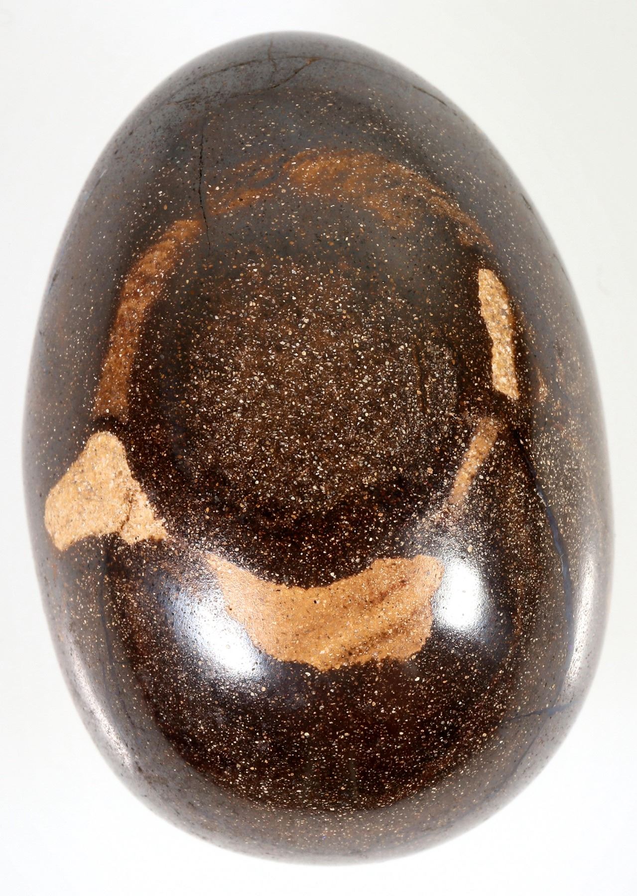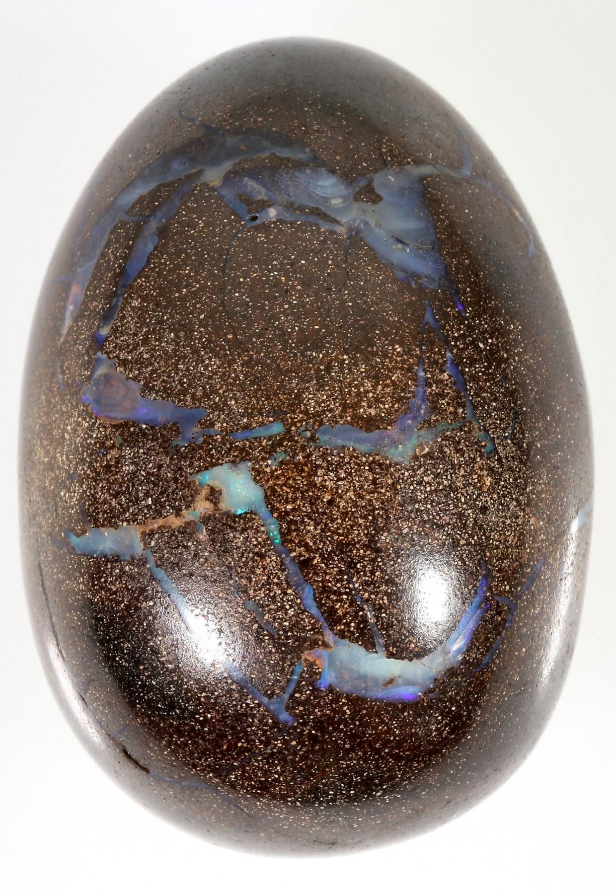 Precious fire opal from Australia cut into an egg shape. Consists of opal in an ironstone matrix. Approximately 1.75" x 1.25".