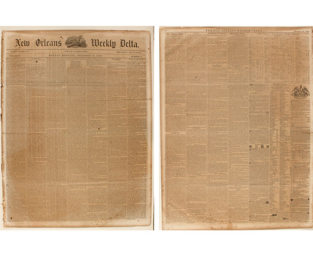 Notice of President Polk message to Congress that he would be introducing bills to Congress tomorrow (1) creating a territorial government in California and (2) admitting California as a state. New Orleans Weekly Delta, December 18, 1848. (Burger collection)