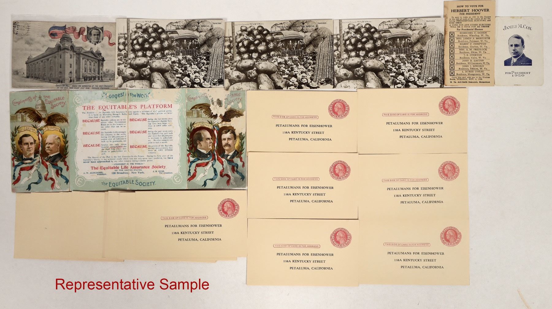 Lot of 26. 18 for Eisenhower campaign, 3 for Taft (RPC) , McKinley , Hoover and Cox. In excellent condition.