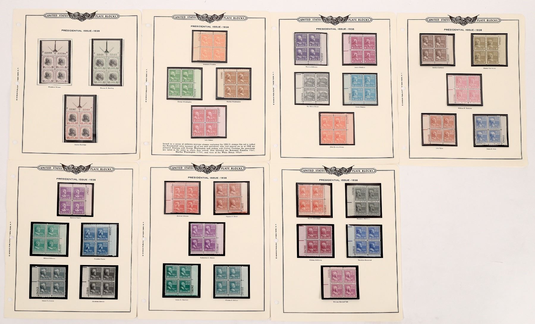 Presidential Issue series of 1938 plate blocks. All in excellent condition. Of special note in exemplary condition-$1, $2, $5 with top sheet arrows and registration.