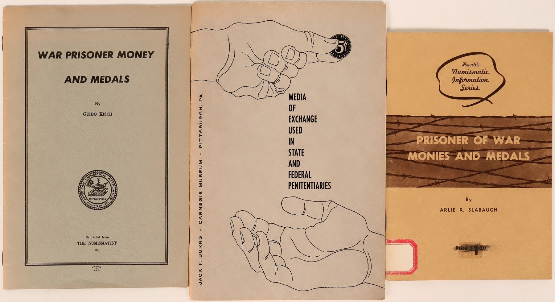 Lot of 3. 1) Prisoner of War Monies and Medals by Arlie R. Slabaugh. 2) War Prisoner Money and Medals By Guido Kisch. Reprinted from the Numismatist. 3) Media of Exchange Used in State and Federal Penitentiaries. By Jack F. Burns.