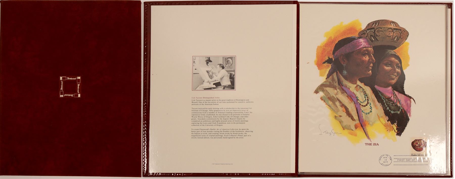 Lyle Tayson's portraits of the American Indian , "Pueblo Art of American Collection." He spend 4 months visiting the Southwest Pueblos before painting the original paintings. His picture was individually hand signed by the artist. Four pictures painted of the Zia, Hopi, Acoma and San Ildefonso Indians. The pottery that he painted was made into U.S. Postage stamps. The first edition of the stamps are in the Pueblo Art of American Collection.