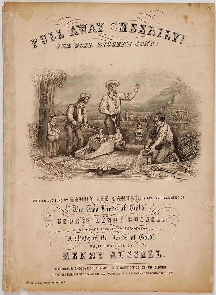Written and sung by Harry Lee Carter, in his entertainment of "The Two lands of Gold." Also sung by George Henry Russell. Composed by Henry Russell.