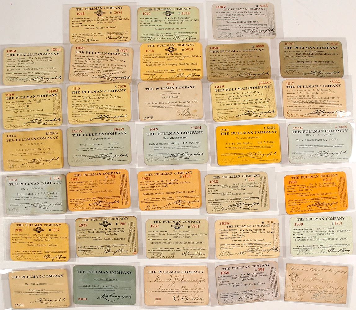 Lot of 33 passes. Issued 1880, 1901, 1906, 1911, two for 1912, 1914, two for 1915, 1916, 1917, four for 1918, two for 1920, 1921, 1922, 1927, 1928, 1932, 1933, two for 1935, 1936, two for 1937, two for 1938, 1939, 1940, and 1941. (Potter Collection) HWAC# 59918 Date: 1880-1941 Location: