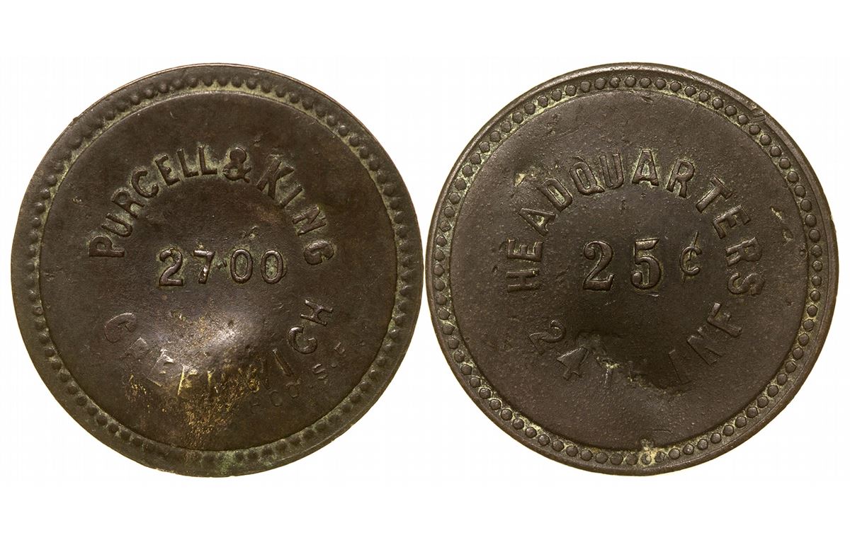 Unique military token GF 25c 24th Infantry from Purcell & King on Greenwich St.