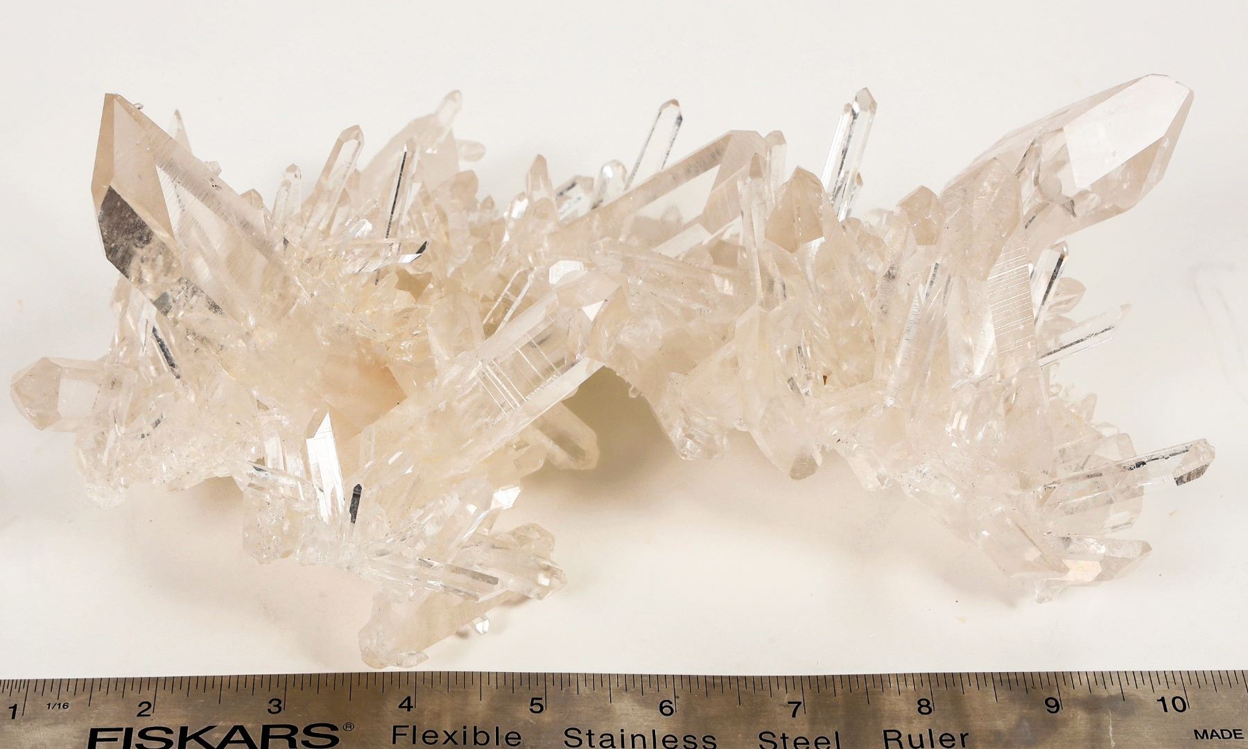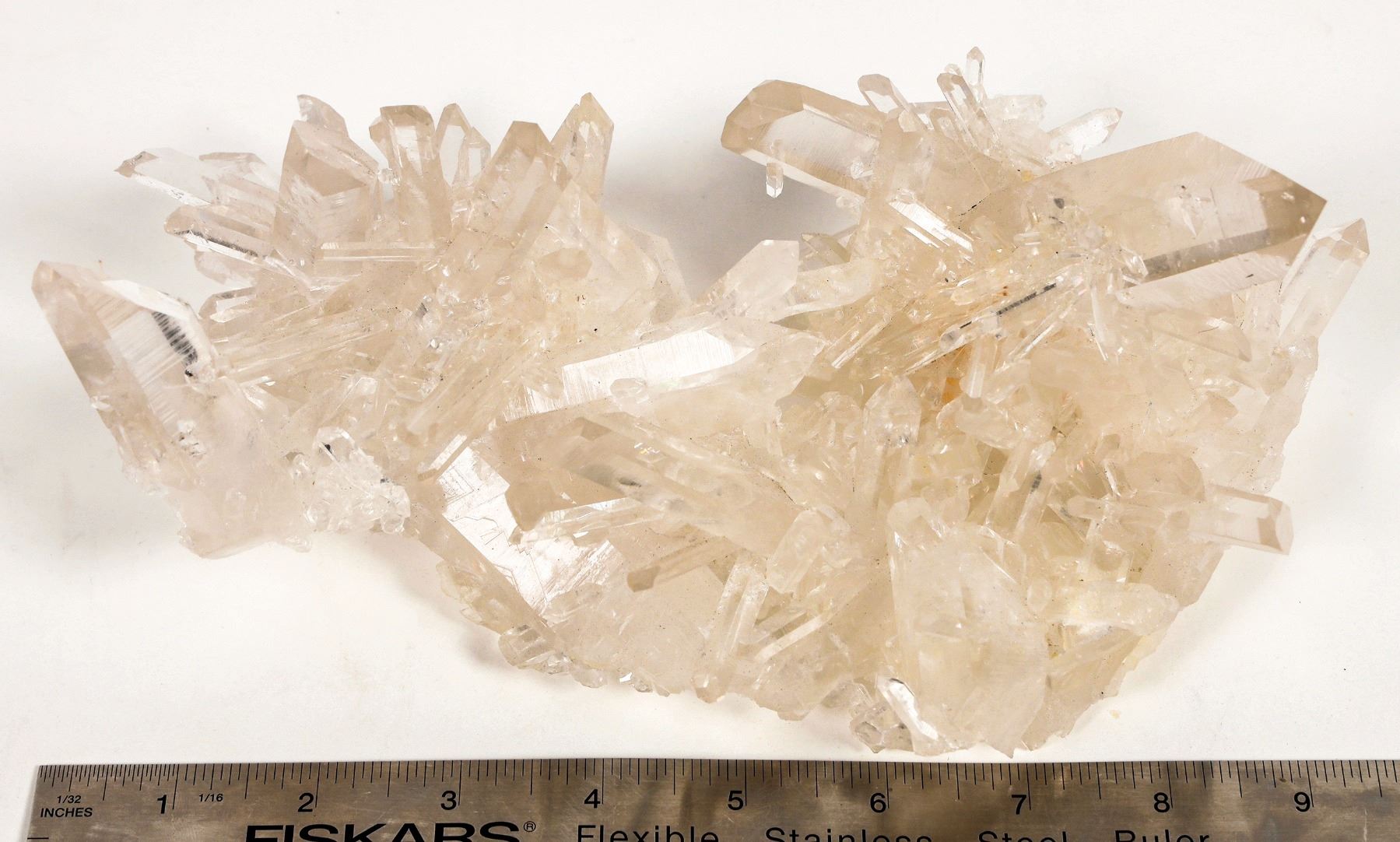 Coleman mine, quartz. Clear to white coloration with very subtle rosy hue at base. 8x5x3.75". See photo.