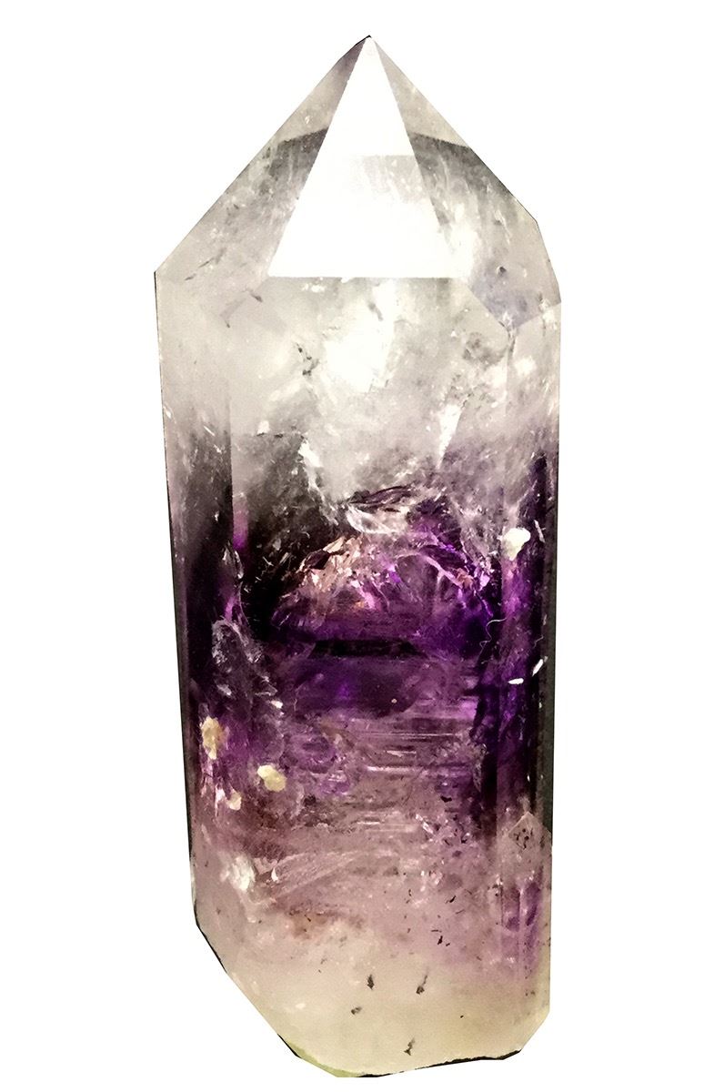 A superb, large, single color-zoned crystal of quartz from the world famous deposit in the Goboboseb Mountains of Namibia. The quartz crystal features a strong amethyst color-zone, with colorless "rock crystal" quartz in the base and termination of the crystal. The exterior condition of the crystal is outstanding having a classic prismatic form and glassy luster. As is typical with Goboboseb amethyst crystals the crystal interior has some growth features of vacuum bubbles and interrupted growth. The crystal has no attached matrix rock, but, these crystals occur within gas vesicles contained within basalts of volcanic origin. Dimensions (cm): 11.5 H x 4 W x 3 D. Location: Brandberg Area, Erongo Region, Namibia Date: Location: Namibia HWAC# 53001