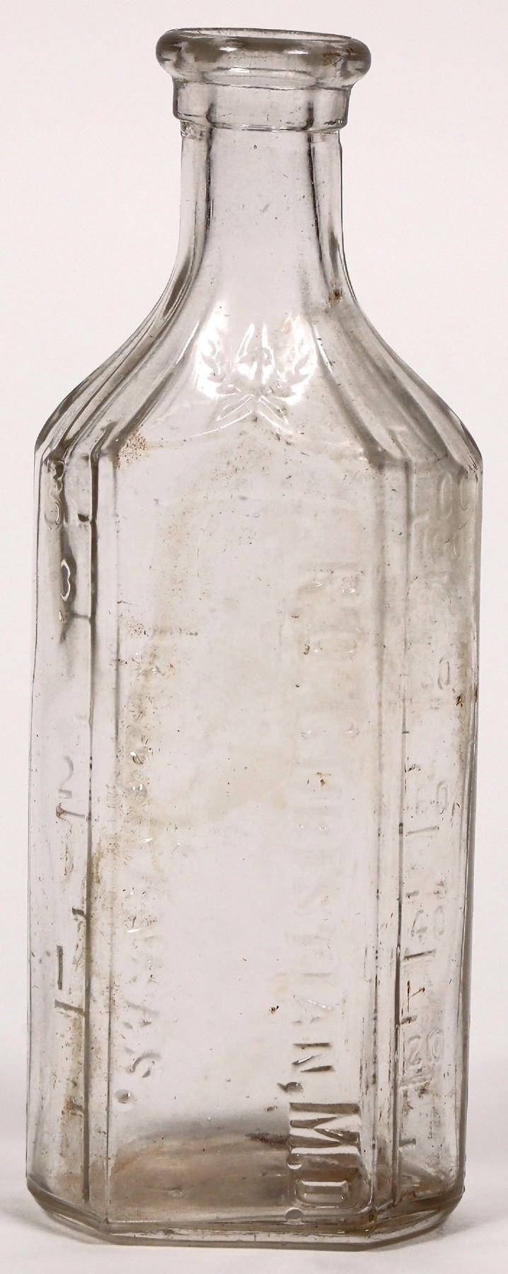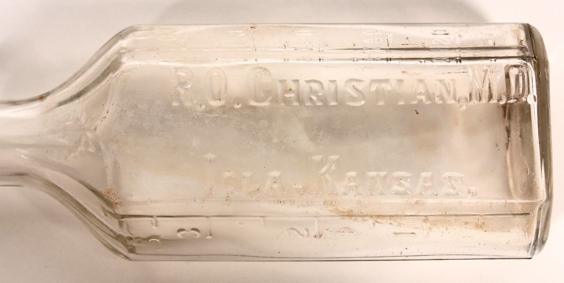 Embossed R O Christian MD bottle. 5.5". No apparent chips or cracks.