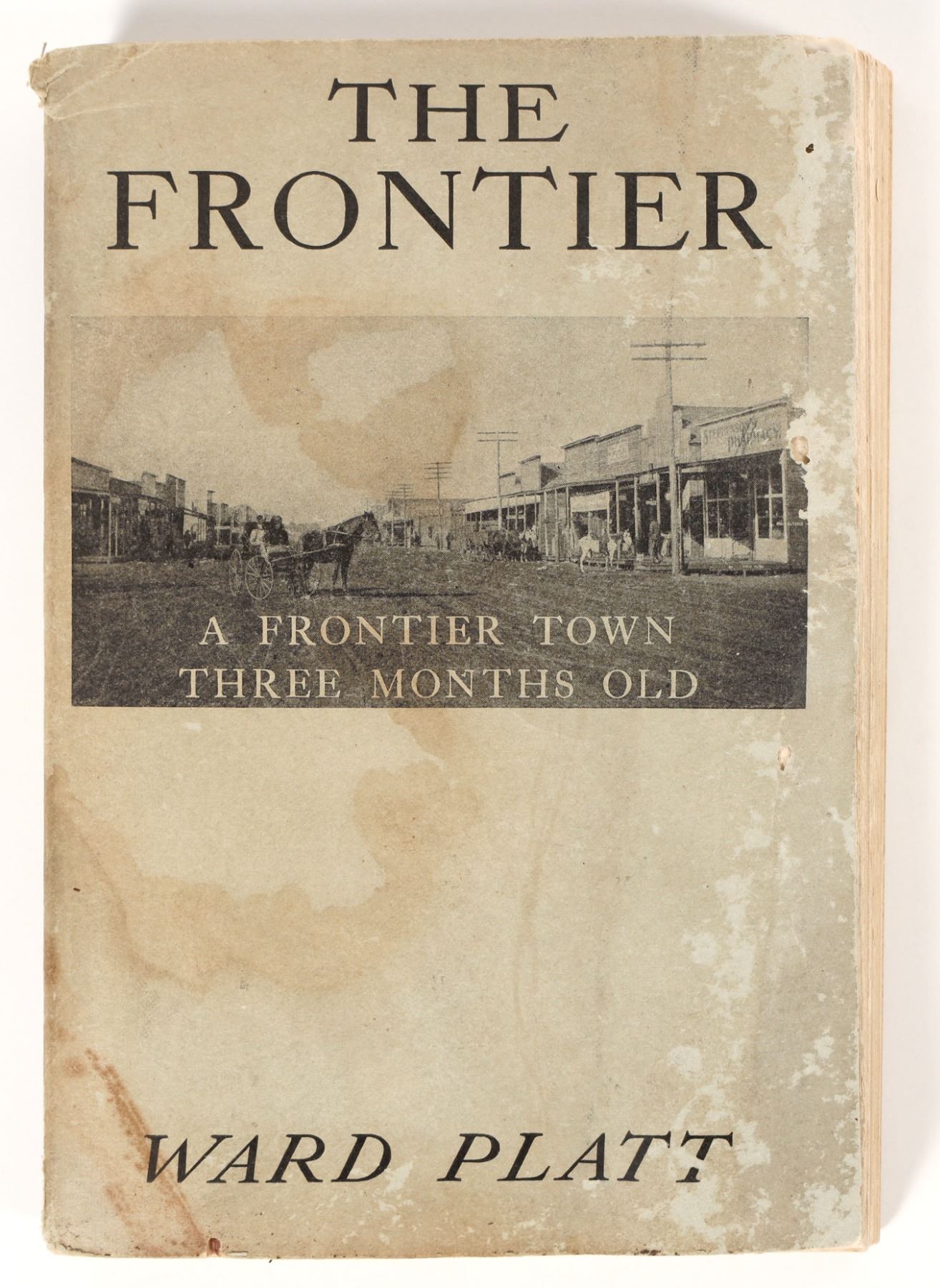 The Frontier by Ward Plat, roughly cut paper copy. This copy has 2 fold out maps in color, with three folds, measuring about 12x10", the maps are in excellent condition aside from one minor incomplete tear about 1.3" long on the first map. Mild foxing and toning throughout, with what appears to be a 2mm bullet hole-like gap on the lower left edge, going through about the first 20 pages. About 3 other similar holes through the front cover and first page on the right edge, with a worn corner. Please inspect photo.