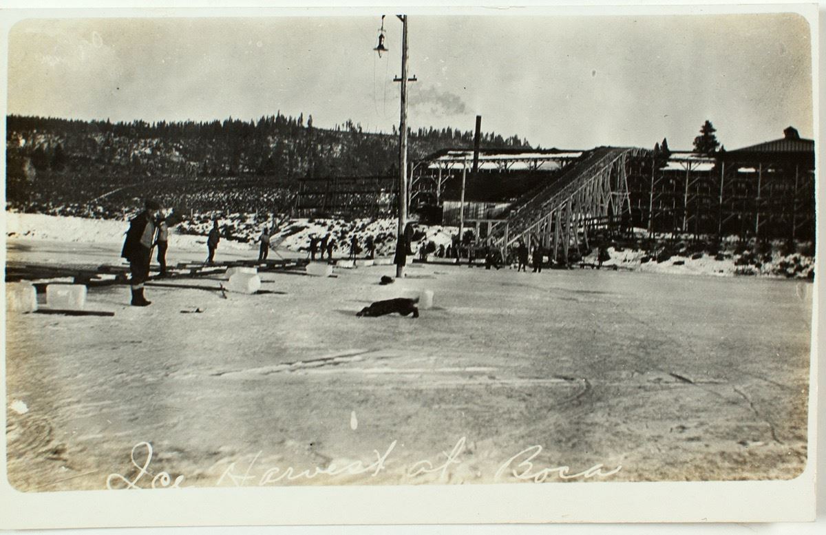 The name means “mouth” in Spanish and derives from the fact that the town was located at the mouth of the Little Truckee River where it empties into the main river. At Boca, winter temperatures frequently dropped to 15 and 20 below zero, making it natural for the commercial ice cutting trade. (Prag Collection) City: Boca State: California Date: hwac# 30763
