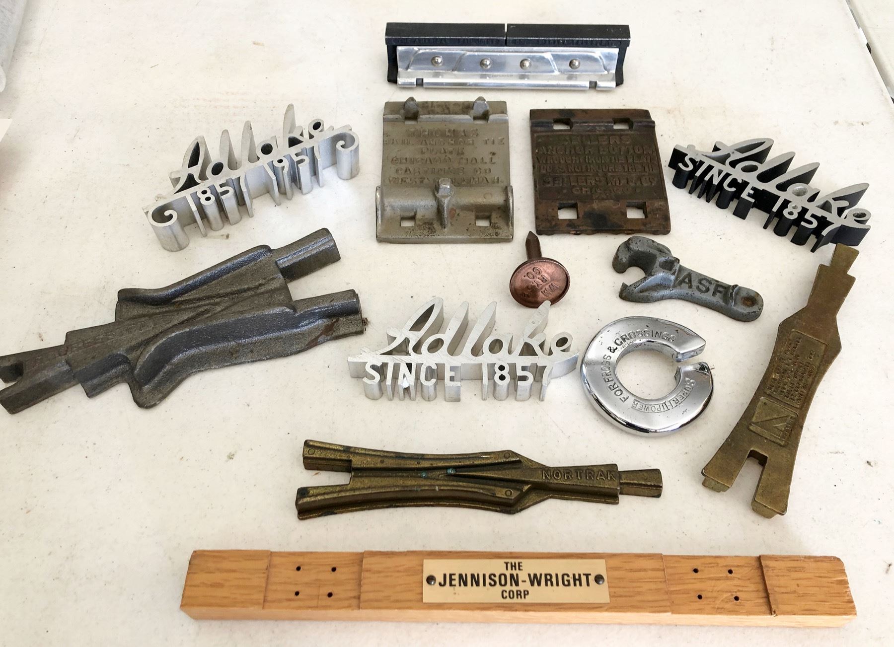 Includes Thomas Rail Anchor Tie Plate; Sellers Anchor Bottom Tie Plate; Gennison-Wright Sample Tie; Progress Fall Switch; Nortrack track joint; Nortrack track joint (2); American Rail Joint; National Lock Washer Co; WM Railway Co Tie Nail; ASF Coupling; 3 Adlake Adams Westlake pieces