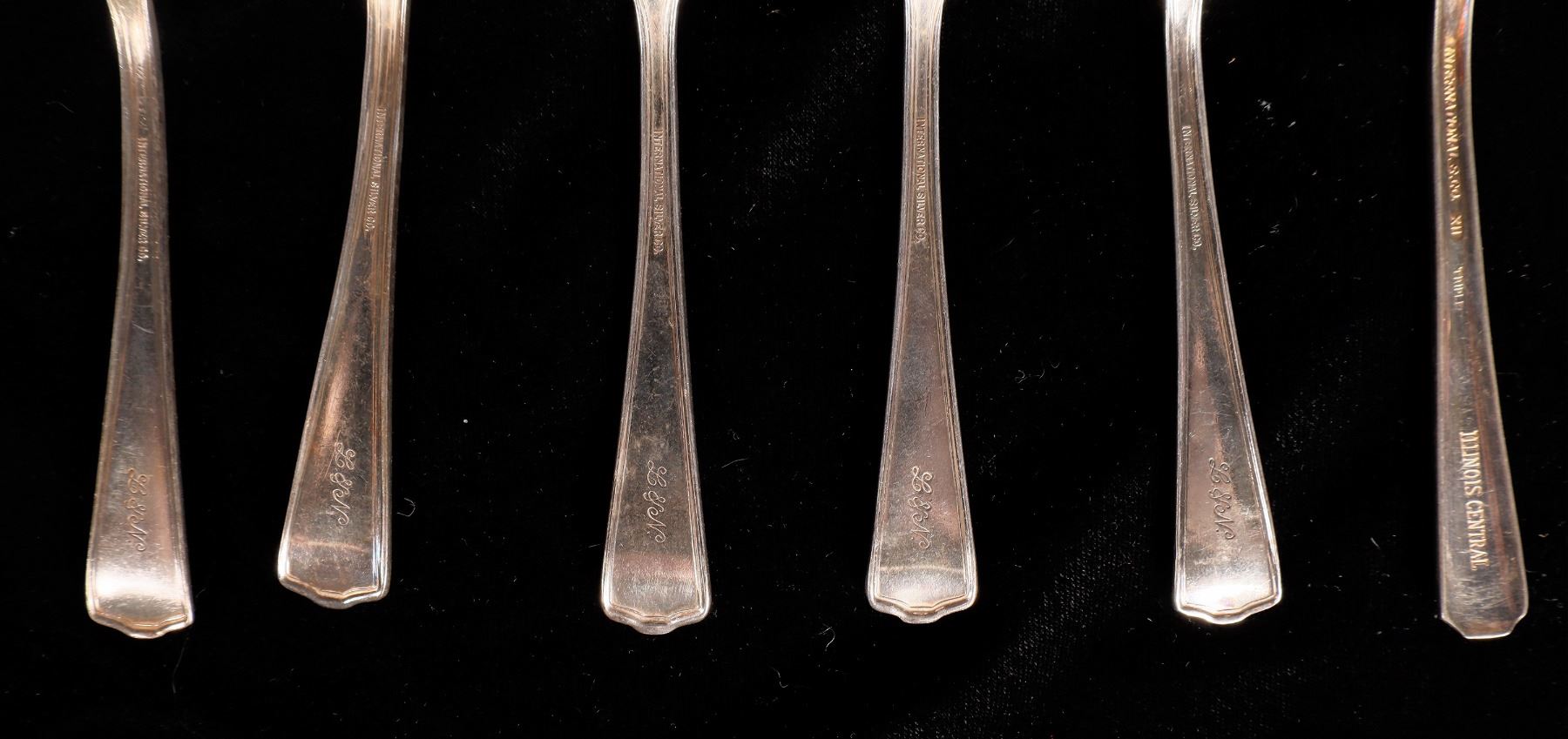 Railroad dining car silver and flatware collection (68). Railroads featured in this collection of forks, knives, spoons and specialty items include, New York Central, Southern Railroad, Union Pacific, Seaboard, Illinois Central and OMST&P Railroad. There is some tarnish (Easily cleaned) on some of the utensils, but they are mostly in nice condition, ready to display or use. Please see photos for more details.
