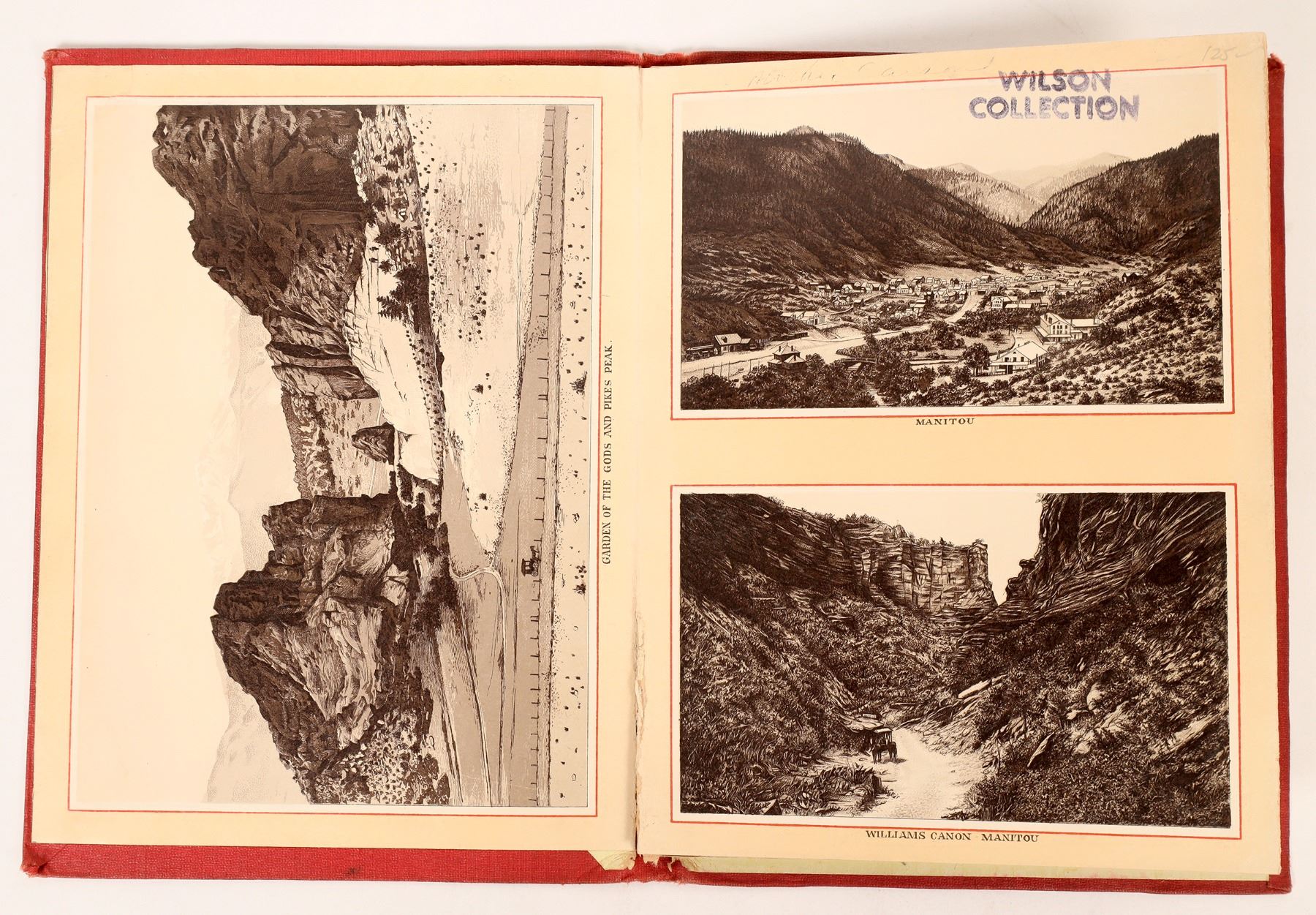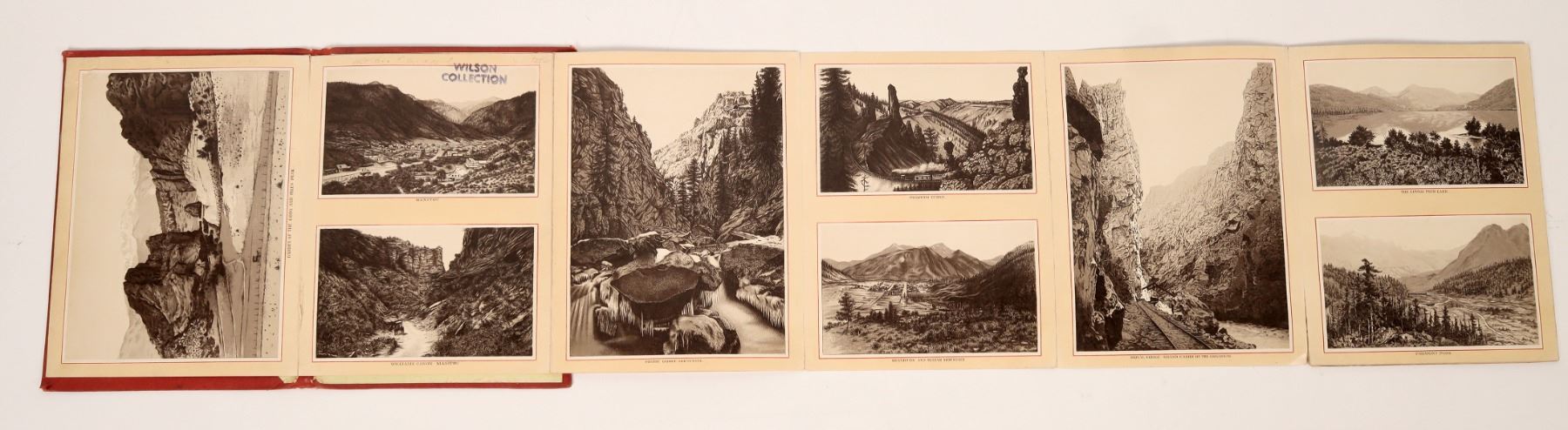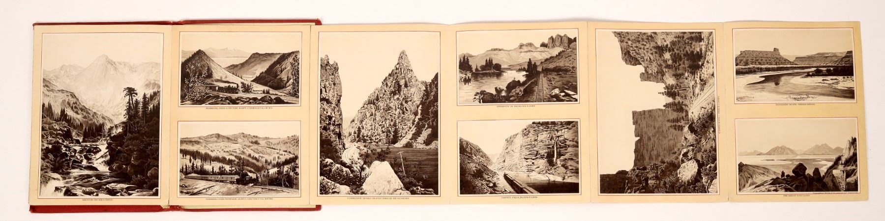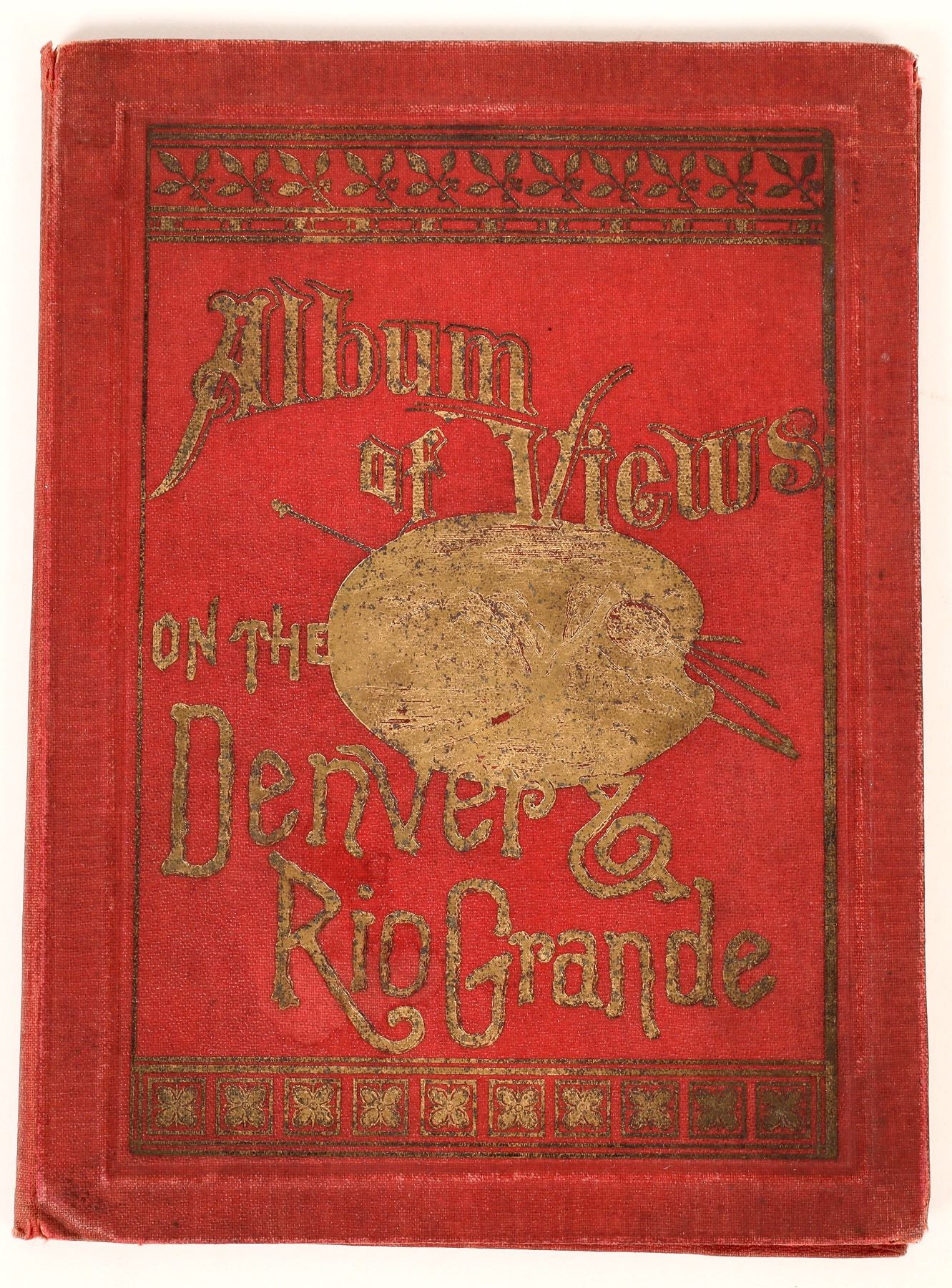Album of Views on the Denver & Rio Grande. About 20 etchings along the route including Great Salt Lake, Phantom Curve, Toltec Gorge and Tunnel, Sierra Blanca etc. 7.5x5.5", insert detaching from spine.