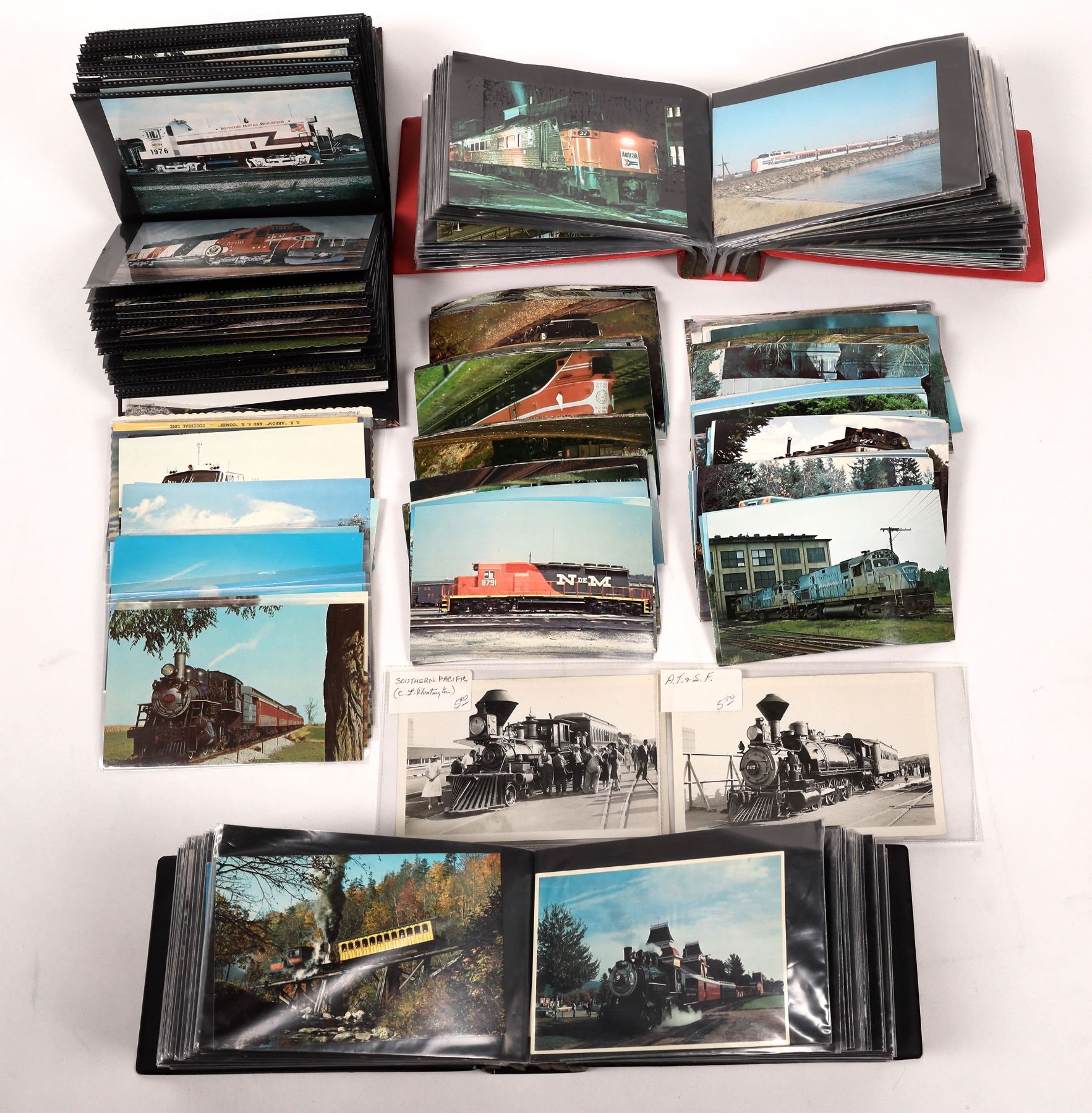 A marvelous postcard collection assembled by a young man in Michigan. The collection shows the fascination of trains, especially to America's youth during a time when all transportation switched to air travel. There are about 450 post cards, c 1920-1980ish, with perhaps 6-8 real photo black and white cards with trains. The trains depicted in the cards are all over America, from coast to coast. They show steam trains, diesel, and every aspect of the American railroad train business. The great majority of the collection is from the post-WW2 era, c 1950-1970, an era when many of these cards were thrown away, rendering this a wonderful archive.