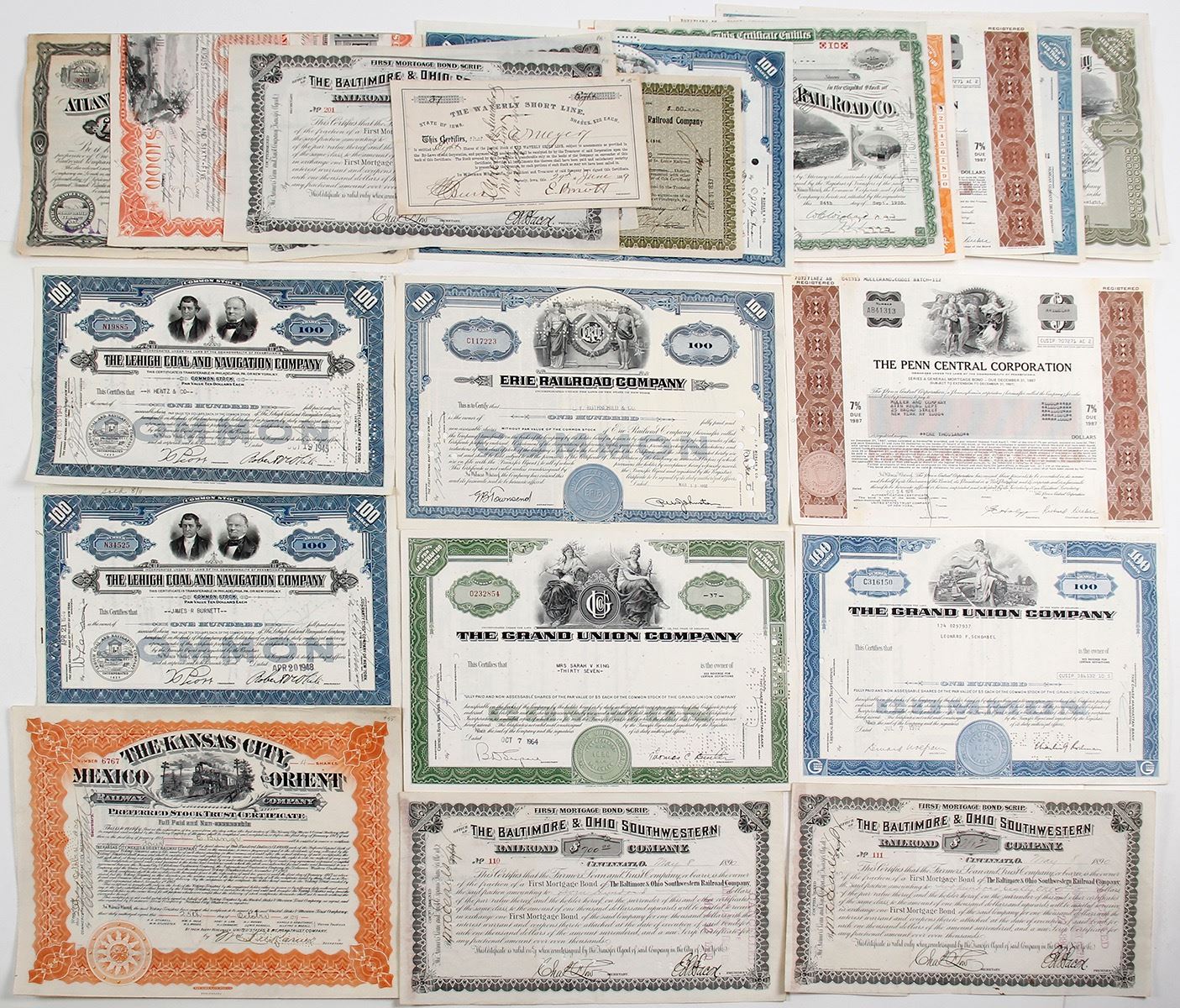 26 stocks and bonds. West Shore Rail Road, Reading, B &O Southwestern, Erie Railroad, Boston and Albany Railroad and more. Date: 1889-1970's Location: HWAC# 64069