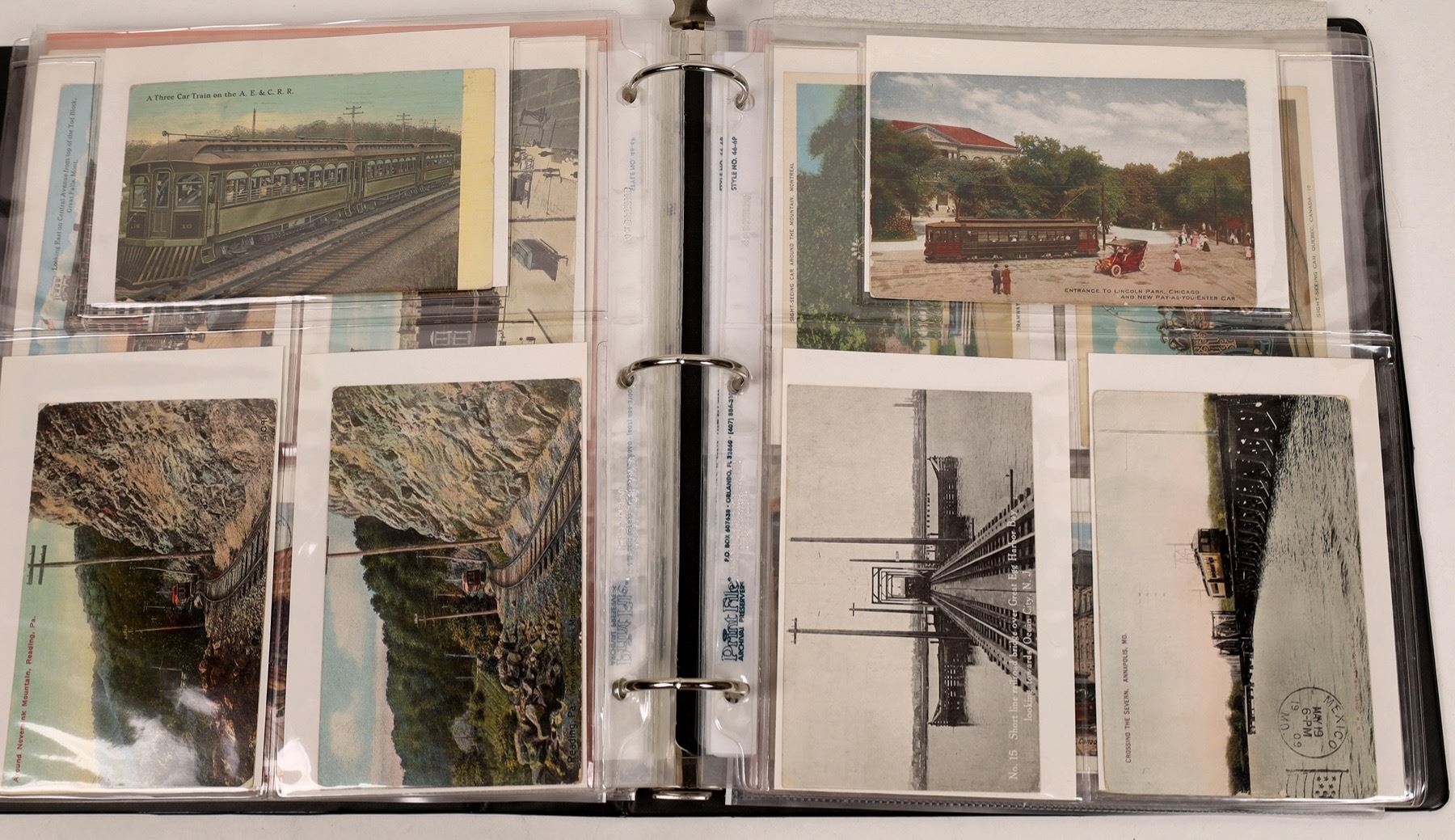 About 130 post cards, with about 72 from California and 58 from Eastern trolleys. Almost all different, c 1905-1912.