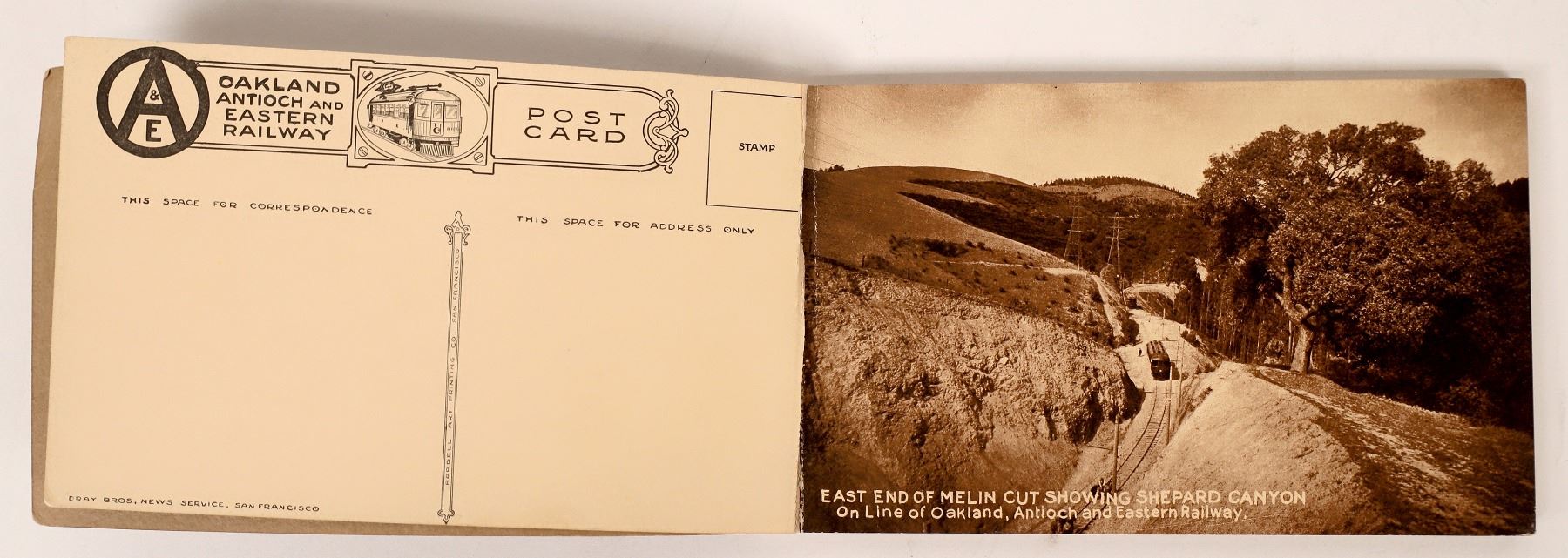 Views on Line, Oakland, Antioch and Eastern Ry. Series No. 2. Views of Melin Cut, Moraga Valley Road, West Fork Redwood Canyon etc. Published by Bardell Art Printing. 3.5x5.75". East Bay California
