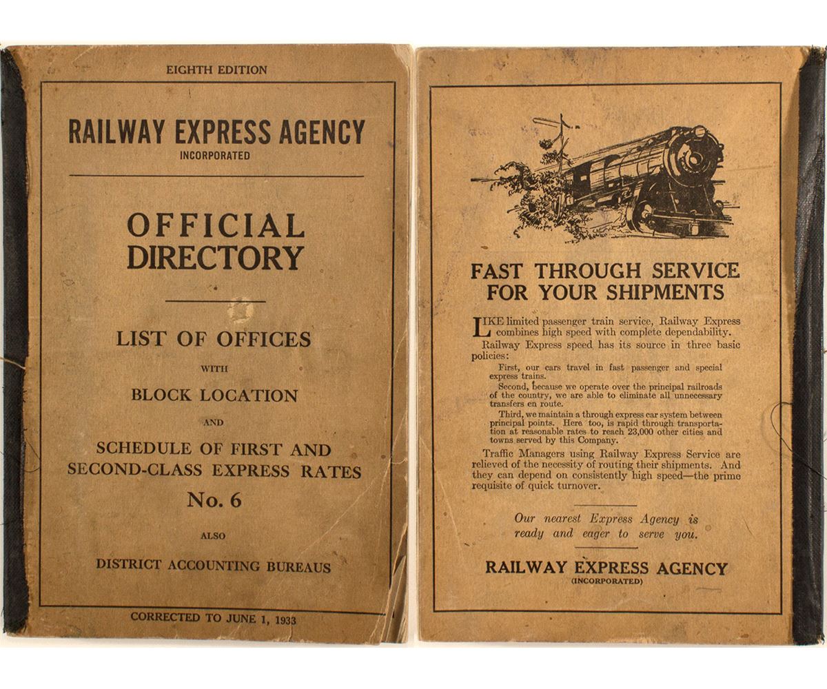 List of Offices and block location and schedule of first and second-class express rates. No. 6. 8th edition. Stiff wraps with a black spine. The front cover has some wear. 320 pages. There is only one other listing in OCLC. Rarity: [i].