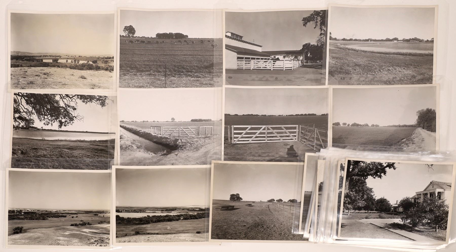 Lot of 40 black and white 8 x 10-inch glossy photographs of a horse ranch with racetrack. Cartwright Studios of Sacramento produced the photographs.