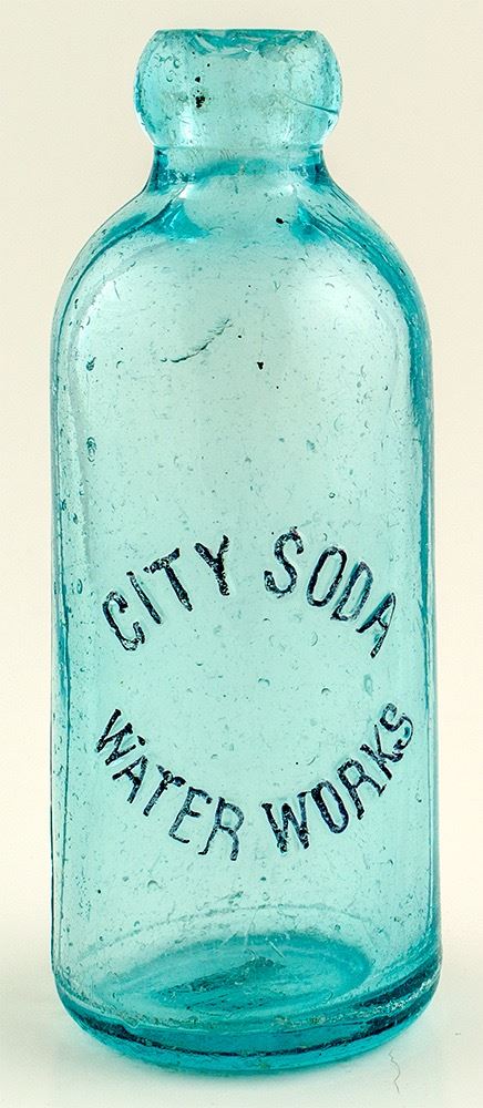 City Soda Water Works, Albuquerque. Rare aqua hutch, no slug plate, blank base. 6.25 inches tall. Rare. City: Albuquerque State: New Mexico Inventory Number: 38914