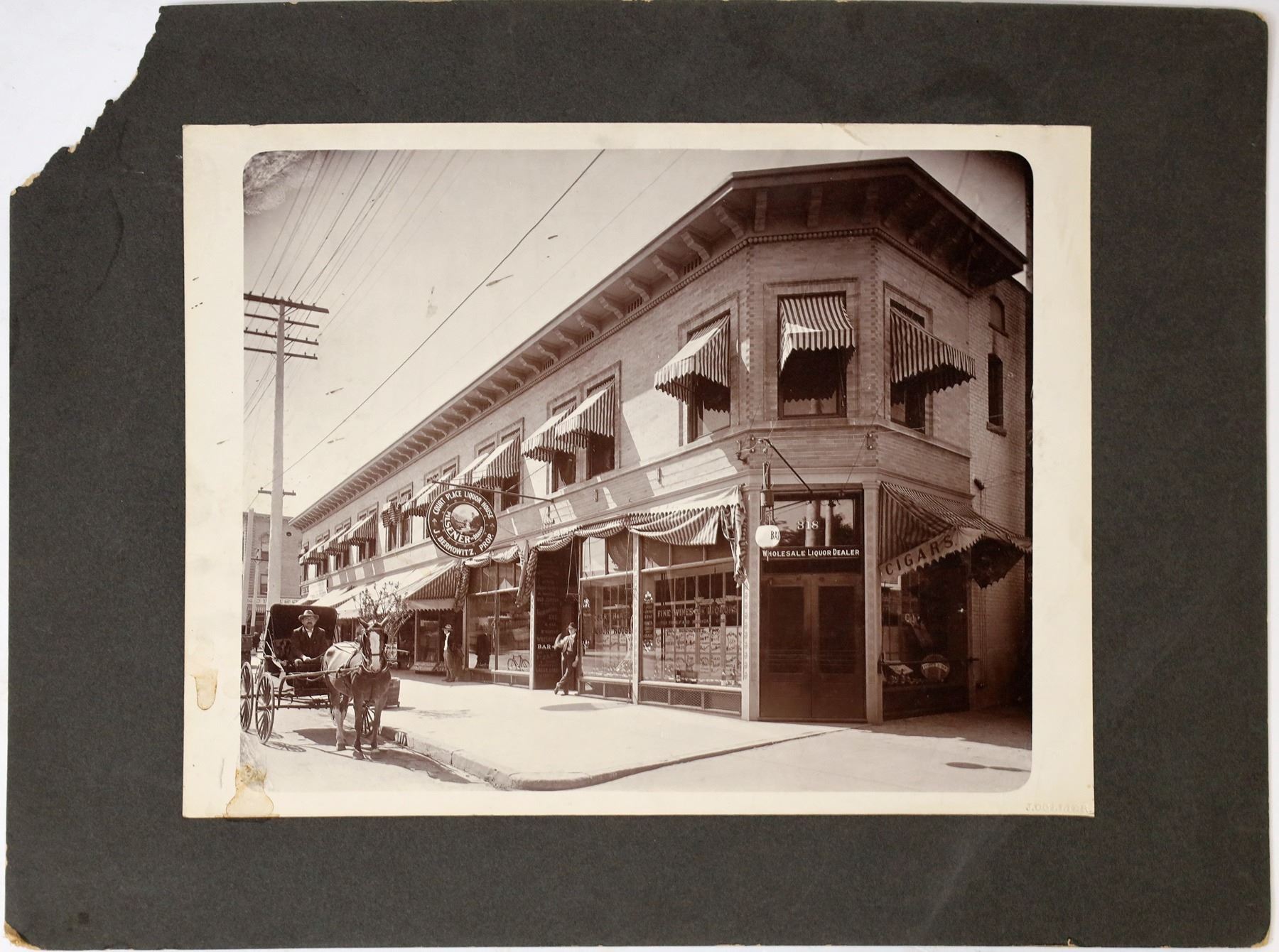 Rare photograph of the Court Palace Liquor House in Denver, Colorado. This photograph was taken by Joseph Collier. Collier was a Scottish immigrant who came to Colorado in 1871 and later became one of the state's most prominent photographers. This photograph is 10 x 8 inches, mounted, 14 x 11 overall. "J. Collier" is imprinted in the lower right corner. Good condition, some stains on the left side of the photograph, top left corner of the backing is torn off.