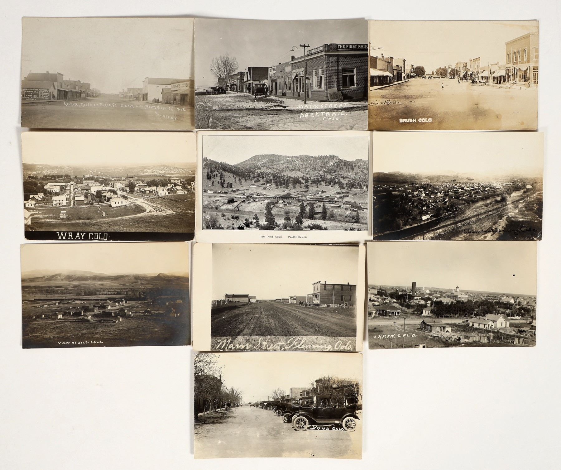 Lot of 10. RPPC's of various towns of Colorado : Wray, Deer Trail, Pine, Silt, Fleming, Brush, Akron and Yuma.