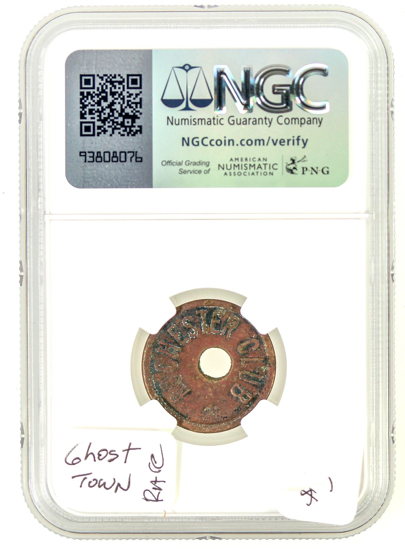 Rare ghost town token. Rochester, NV. Mounted backwards by NGC. See photo.