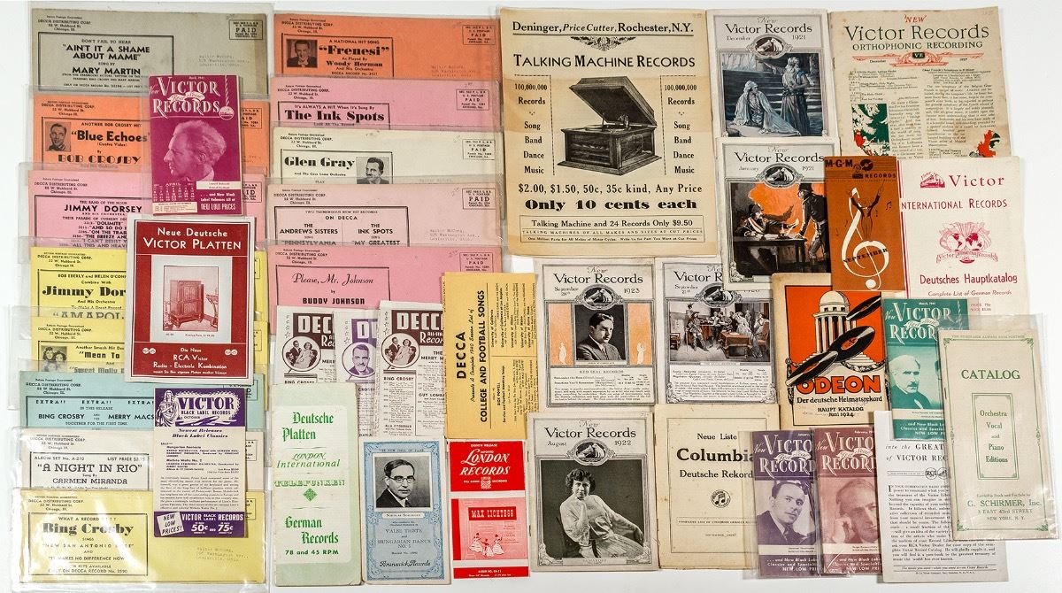 Included: 20 Decca Distributing record catalogs, MGM records, 14 Victor advertising and catalogs, a German record catalog, and more. (Prag Collection) City: State: Date: ID# 32069