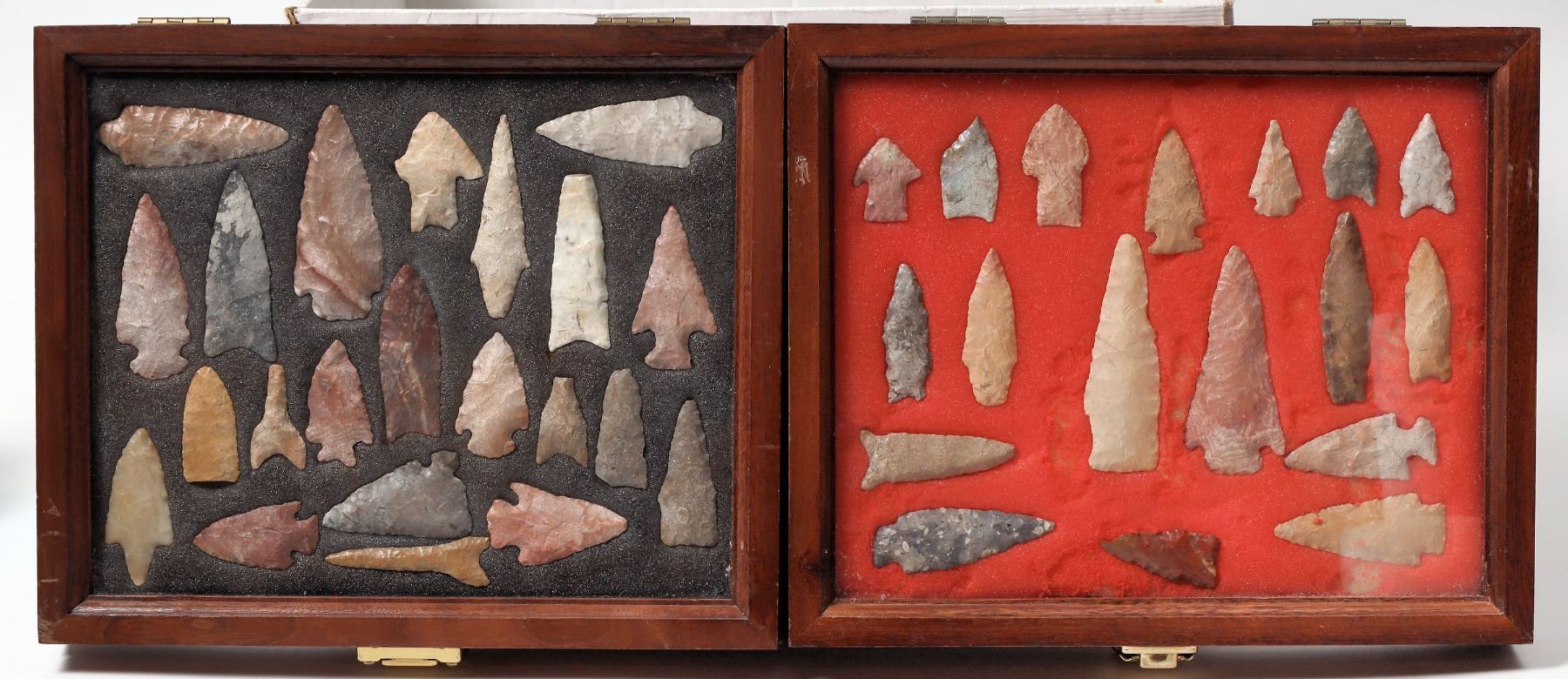Fantastic Red Alibates Clovis Including Scottsbluff, Folsom, and Possible Midland. This lot has about 49 points including drills and one corner tang knife. There are 7 projectile points from Oklahoma and Kansas in one walnut display case. There is one Scottsbluff point at 3.5 in./ 89 mm. and a beautiful corner tang knife at 2.5 in./ 63 mm X 1.5 in./ 39 mm. from Kay County, Ok. Personal finds by Gary Bracken. Please see photos for details. State: Oklahoma, Provenance: Gary Bracken Collection