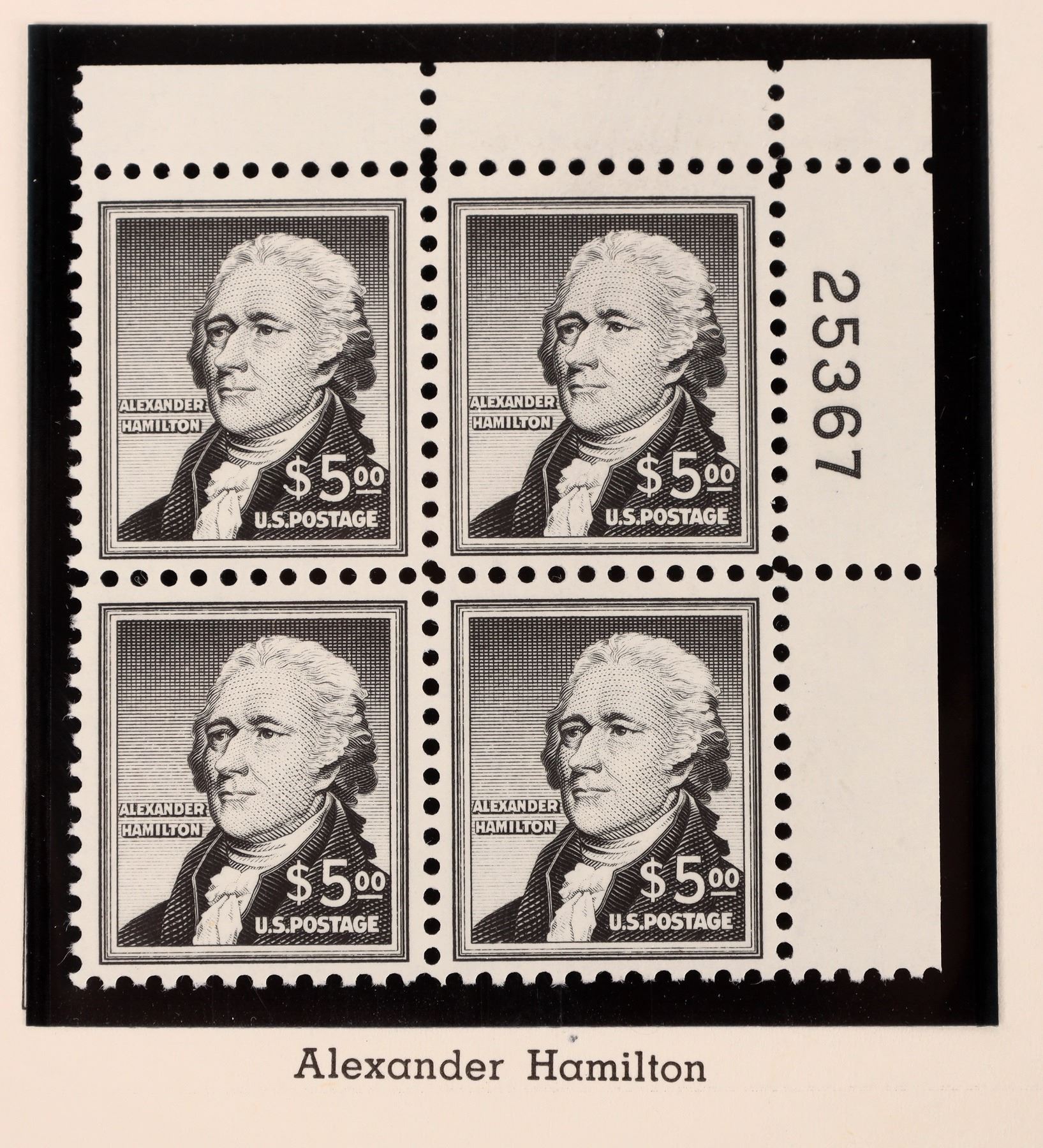 Regular Issue series of 1954-57 plate blocks and 3 from 1960-61 series. Look at that exemplary well centered $5 block!
