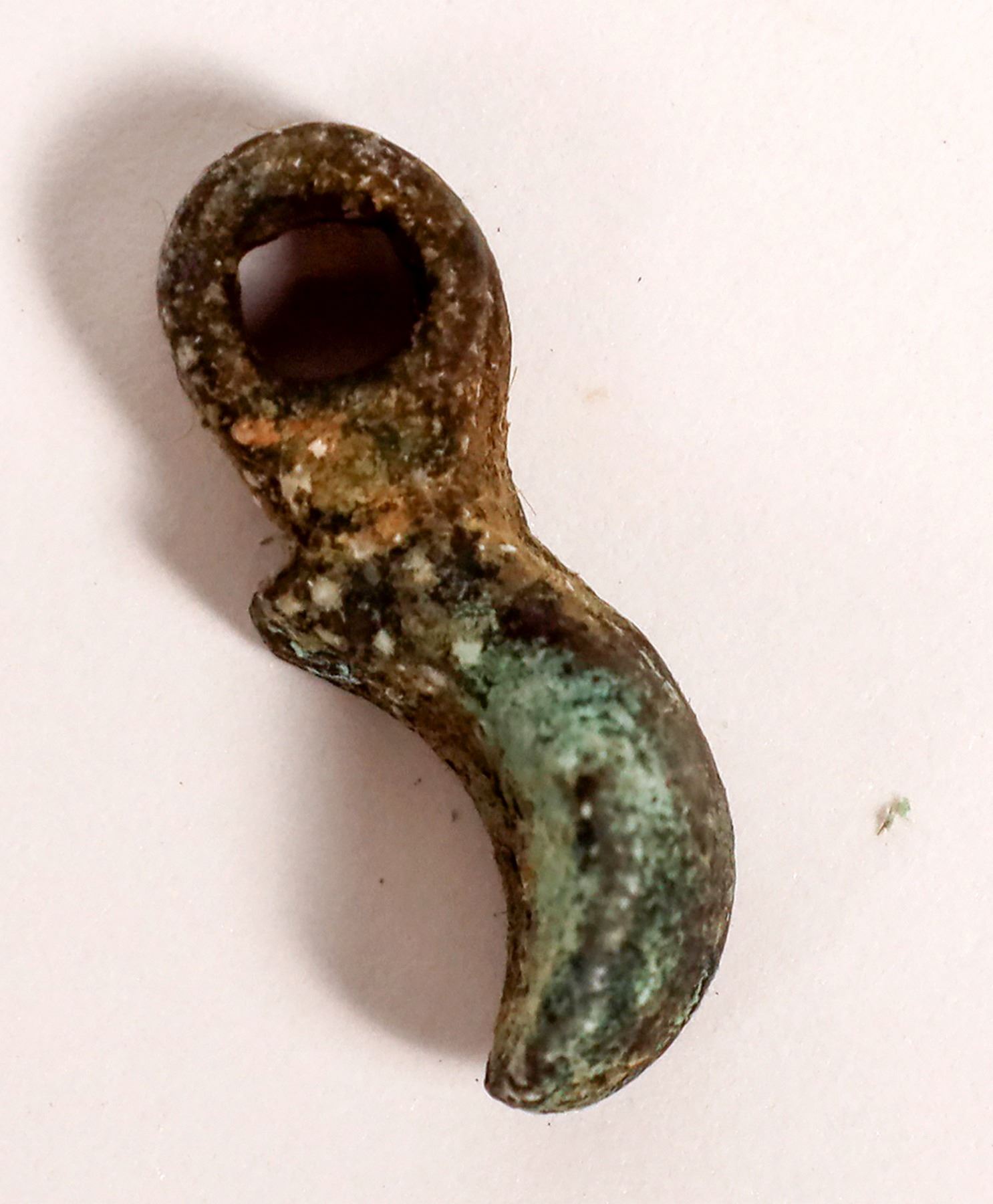 This little lever is the release for a small body powder flask for a small caliber pistol. The flask is now gone but the lever is intact. This thumb release would fill a spout when tipped up-side-down, released and the spout now full of powder would be poured into a cylinder or chamber of a pistol.
