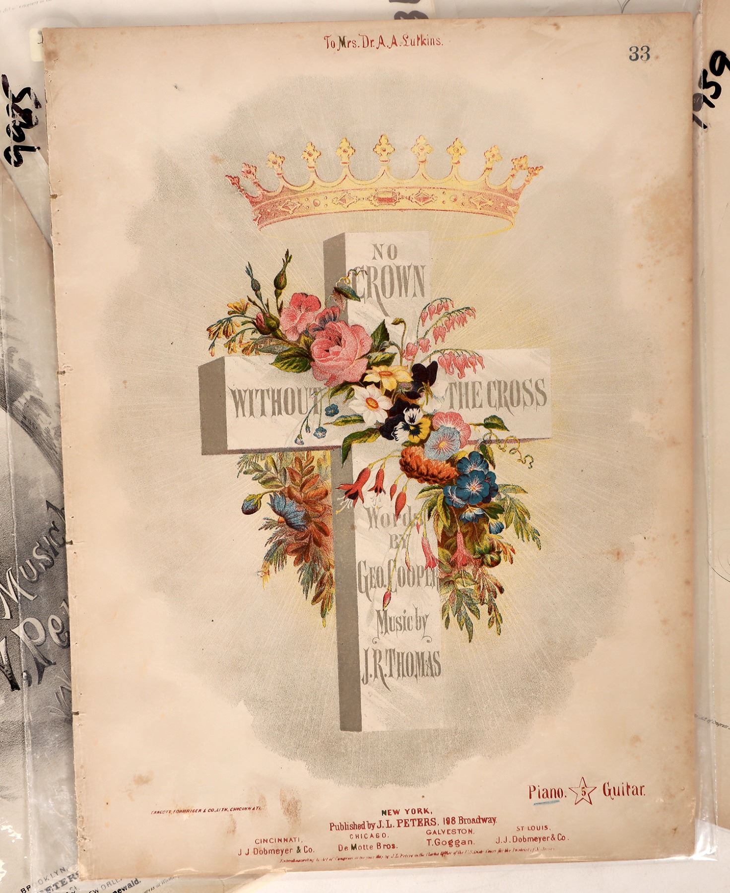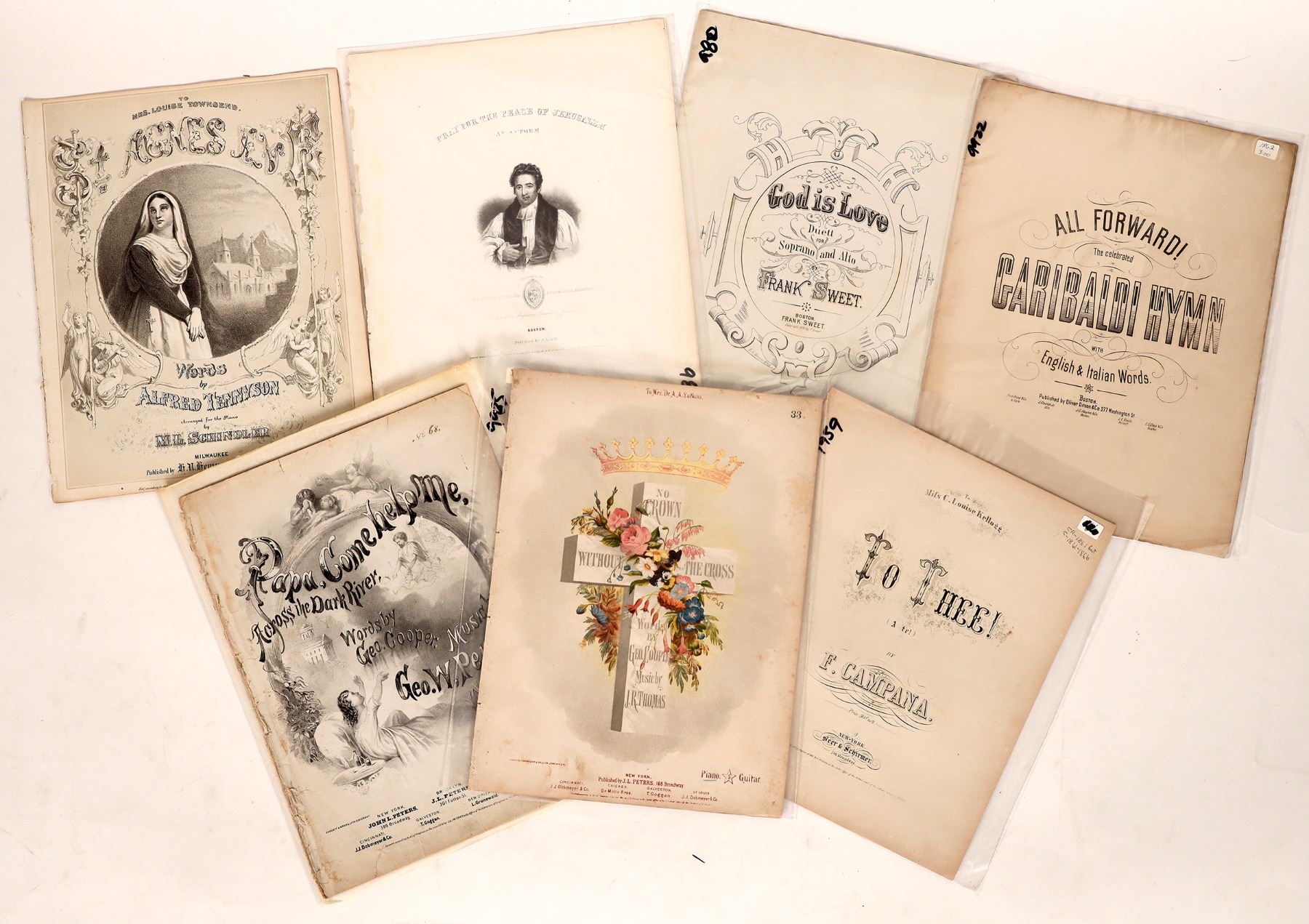 Sheet music geared towards religious hymns. Titles include Papa Come Help Me Across the Dark River, No Crown Without the Cross, All Forward, To Thee and more. All in good, readable condition and ready for the piano. Please see photos for more details.