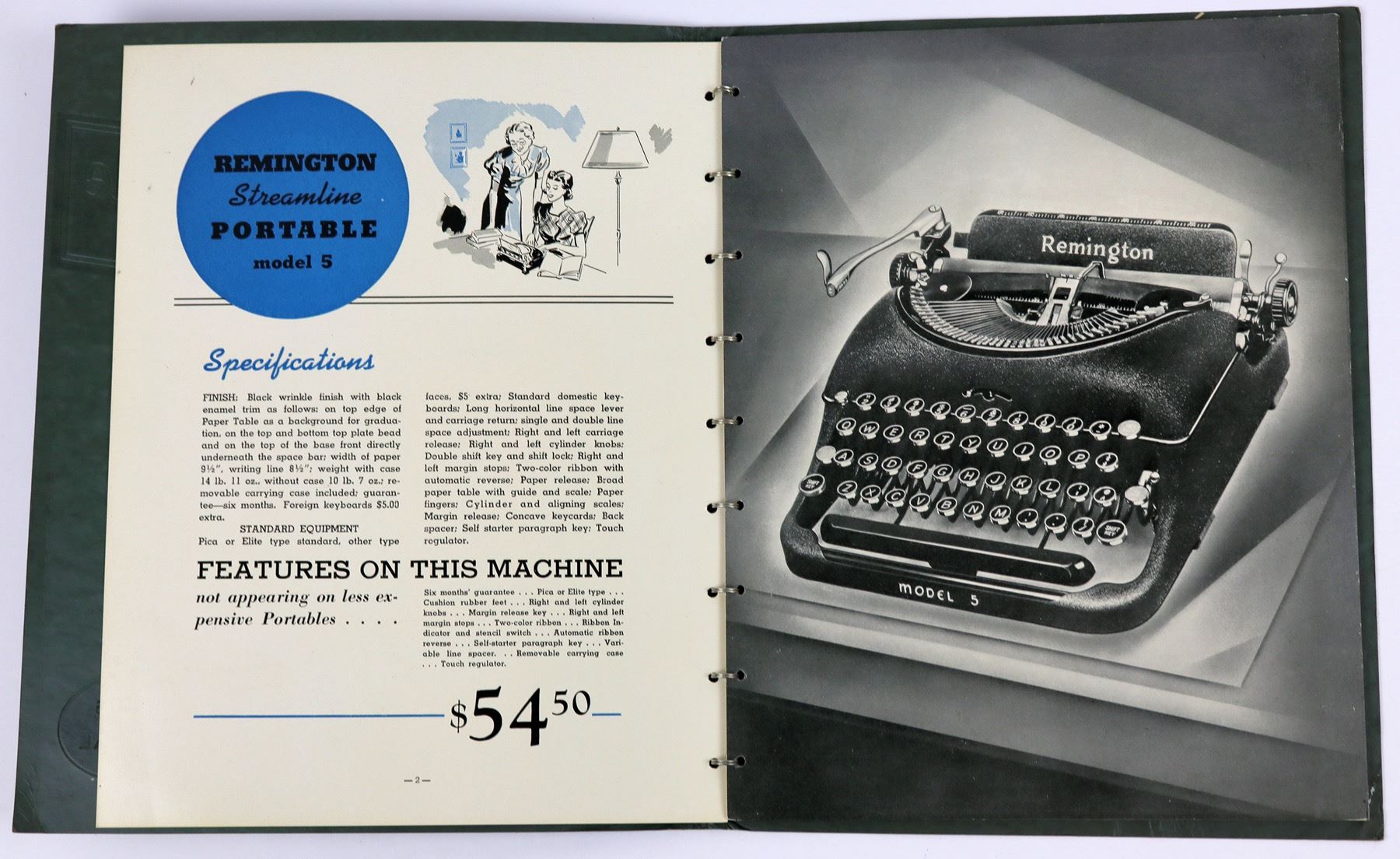Sales booklet for The Portable Line of typewriters. 22pp in cardboard binder with illustrations. 11.25x9". City: State: Date:
