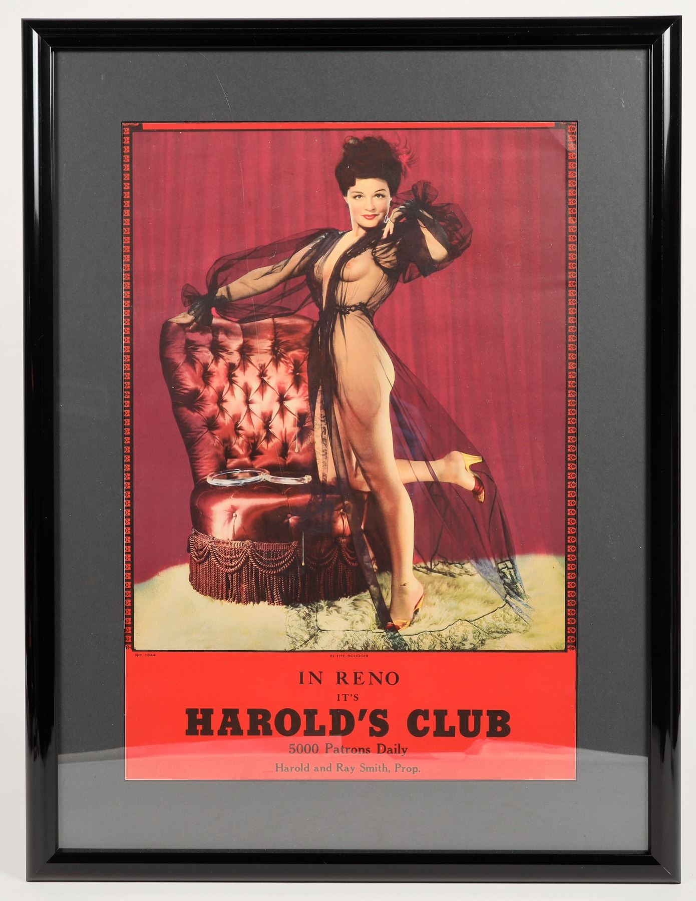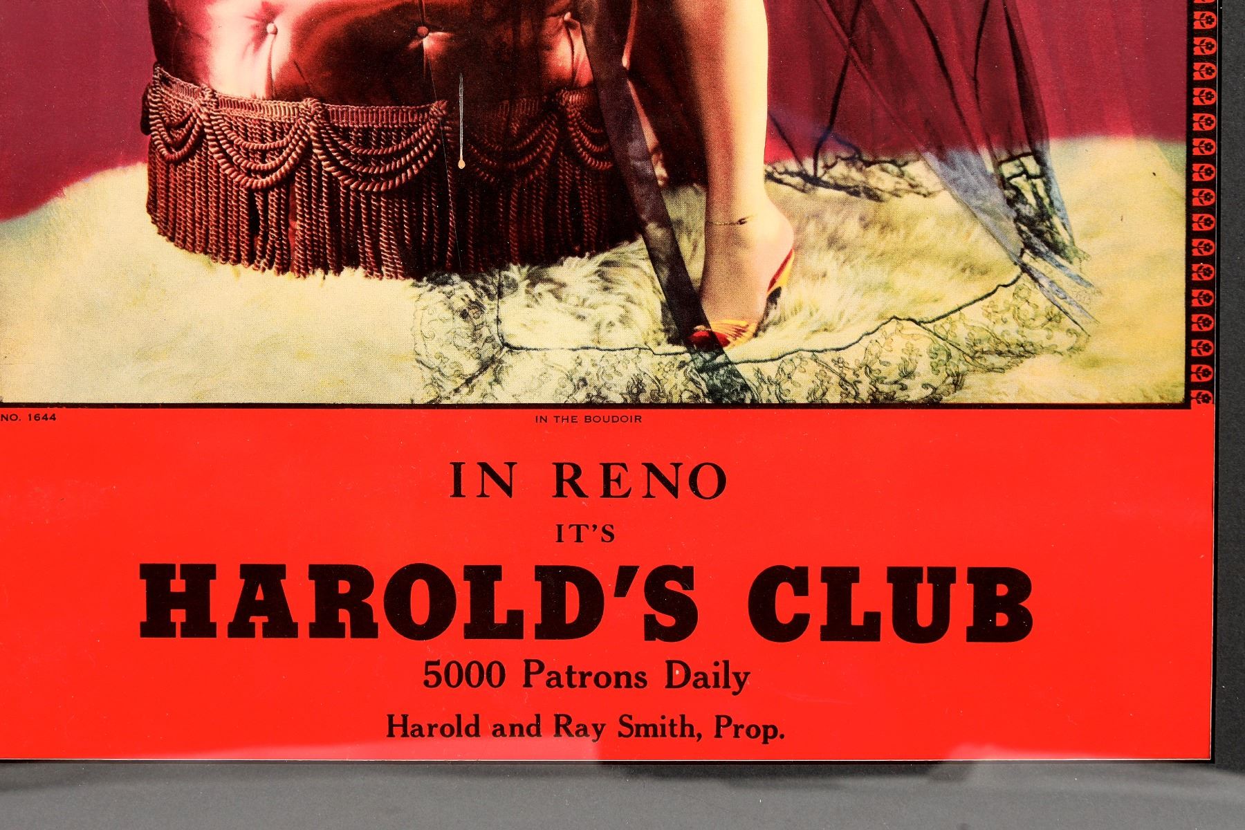 Reno Harolds Club Pin Up Poster. No calendar. Titled "In The Boudoir". 19 X 25",Matted and framed w/mounting hooks. Protective bubble wrap. In Excellent cond.