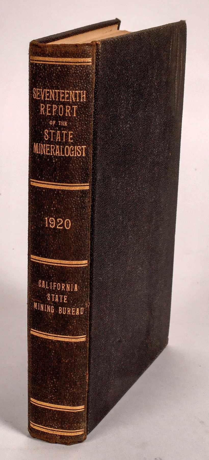 Seventeenth Report of the State Mineralogist by California State Mining Bureau, 1920. A key volume for California mining, 562pp with index. Boards detaching internally, please inspect. California
