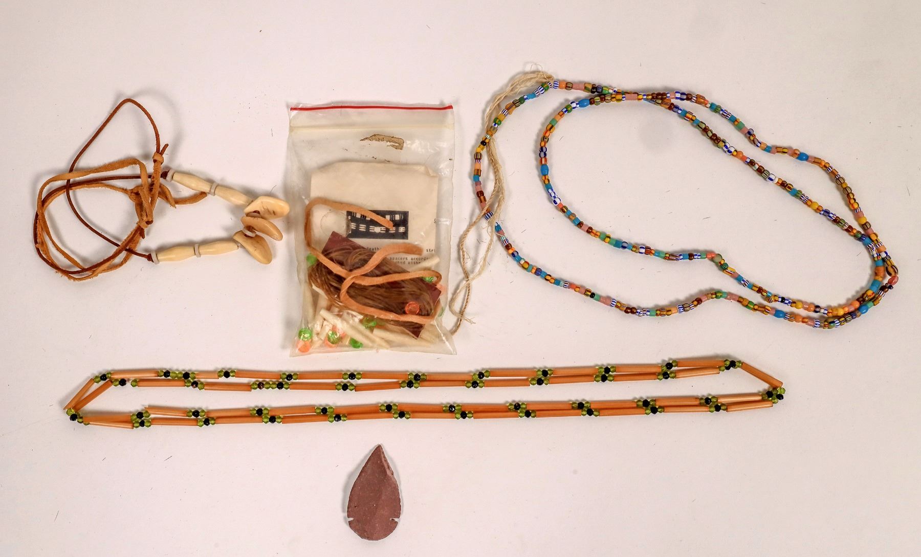 This lot has four Indian style chokers made for re-enactments. Three are complete while the fourth is in kit form with instructions. Please see photos for details.