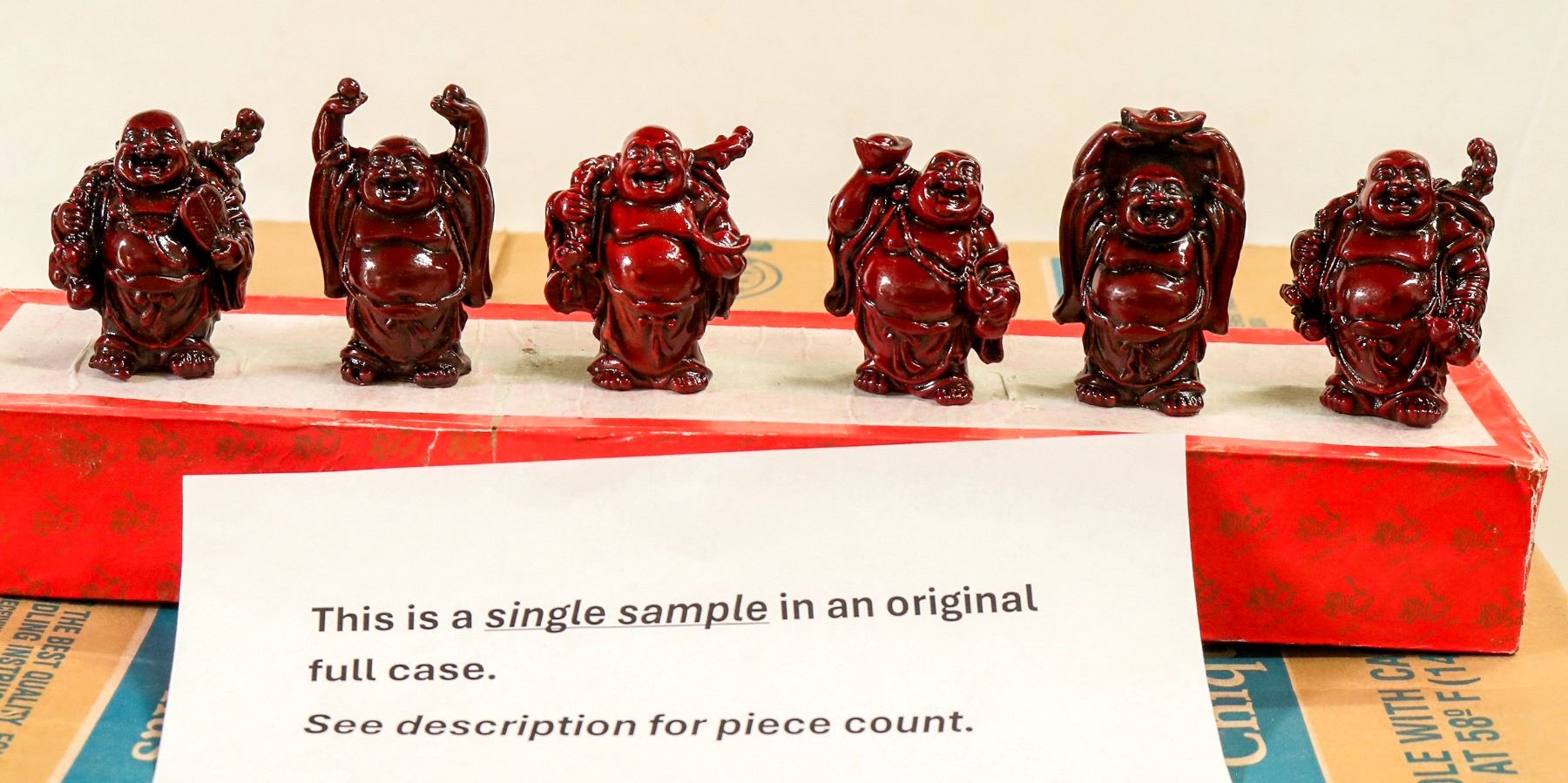 25x resin Buddhas in a set of 6, each figure is 2.5x2.25". These items have been in storage for 20 years and have not been inspected. Sold as is.